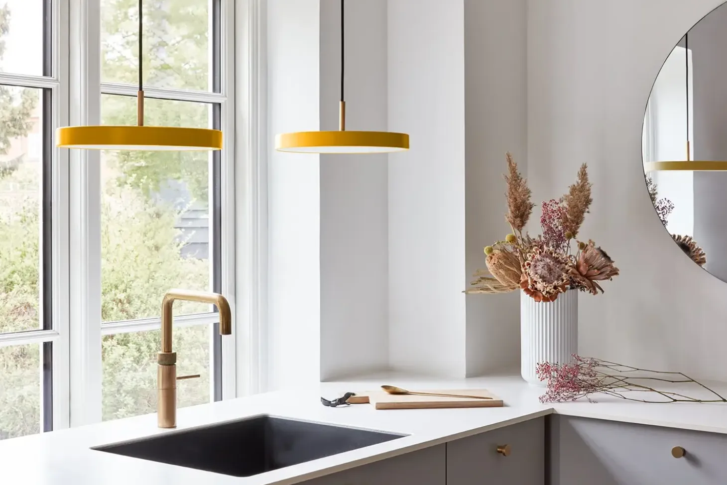 Asteria mini pendel er ideel over køkkenbordet eller spisebordet og går godt i sæt á to.