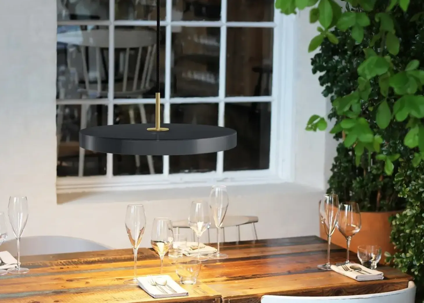 – Materiale: Stål, aluminium og akryl. Metalbaldakin. Indbygget LED-panel.