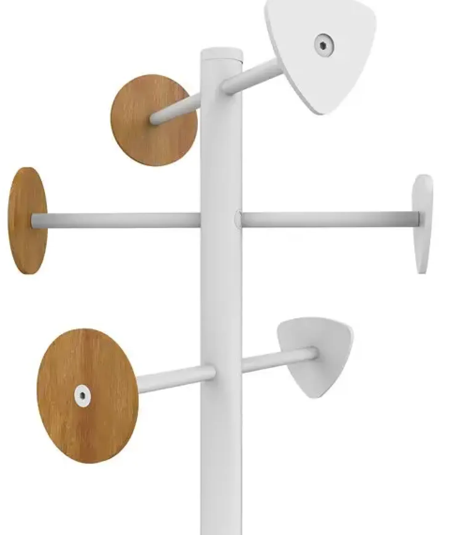 Neo-retro-design: Denne stumtjener med rene linjer er blevet moderniseret til en trendy og moderne stumtjener takket være valget af materialer, der både er naturlige (bambus) og industrielle (metal).