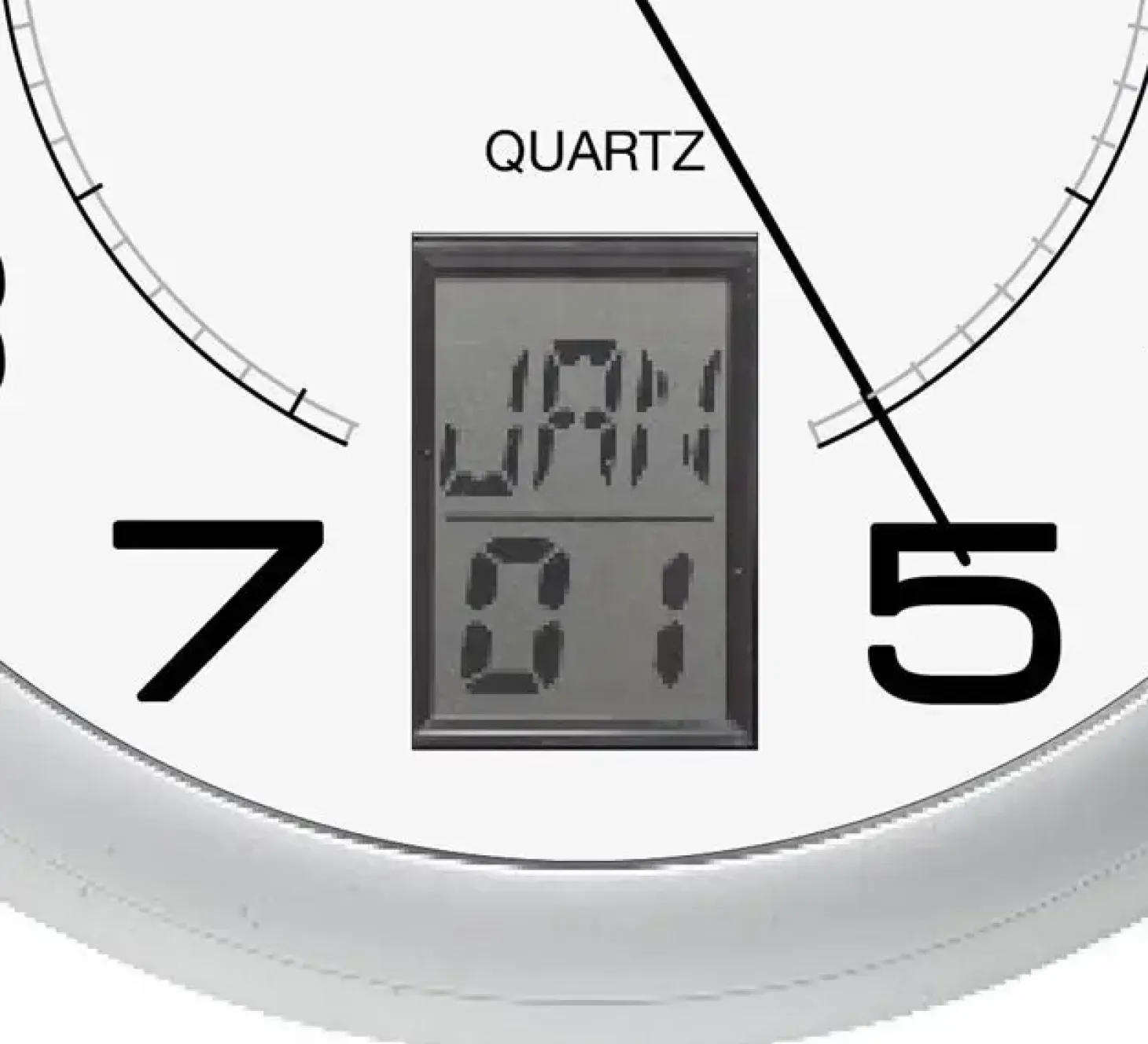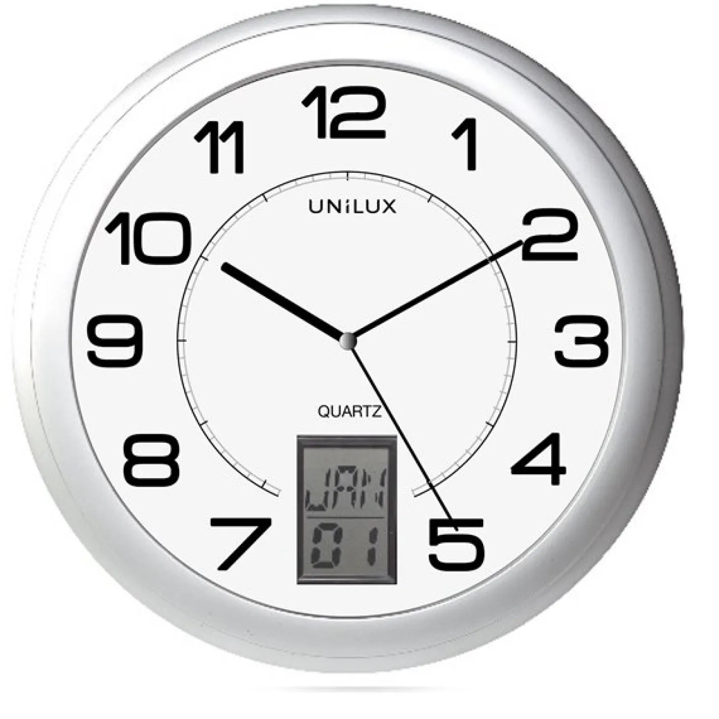 Præcision og elegance. Unilux vægur Instinct med LCD-display til visning af timer og minutter, dag og dato eller dato og måned. Quartz-urværk.