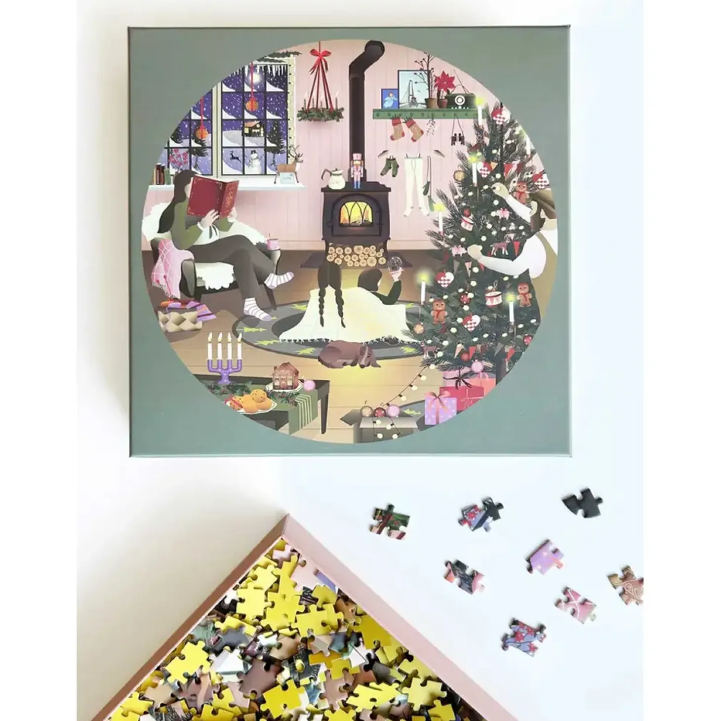 Dette puslespil skiller sig ud med sin cirkulære form, der giver en anderledes pusleaktivitet. Med 1.000 brikker tilbyder det timers underholdning for hele familien. Den detaljerede illustration af en hyggelig julestue med pyntet juletræ, strømper ved brændeovnen og en varm atmosfære bringer julestemningen til live. Hvert element er omhyggeligt designet for at fange øjet og stimulere fantasien, alt sammen i tråd med VISSEVASSEs karakteristiske danske designtradition.