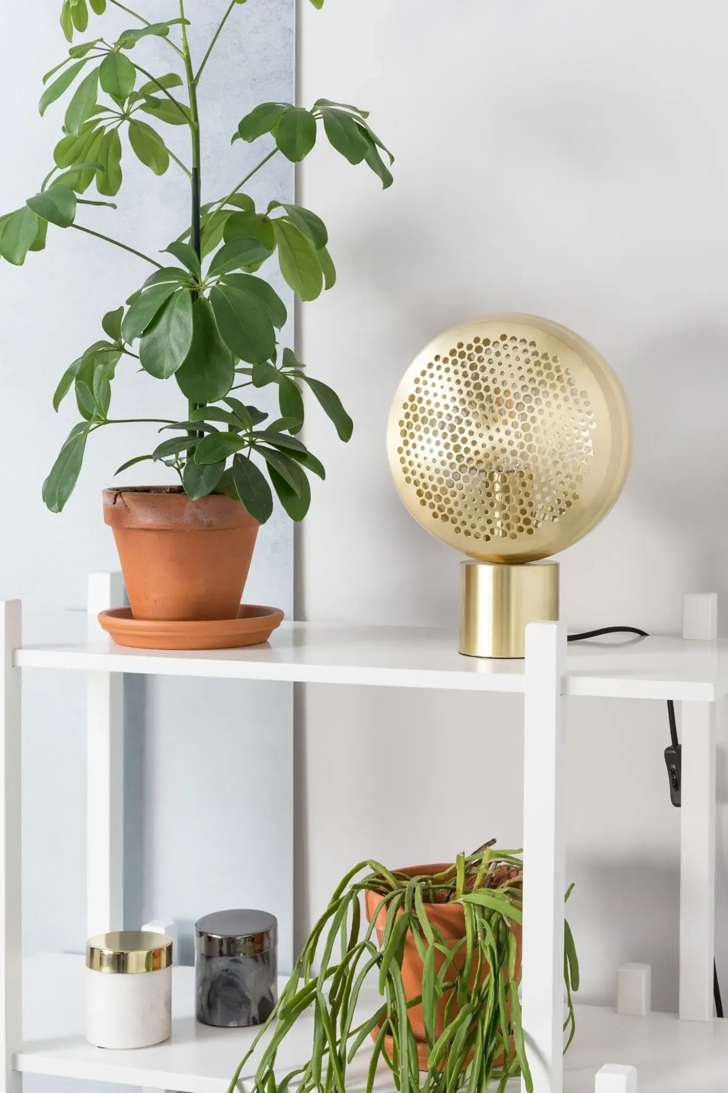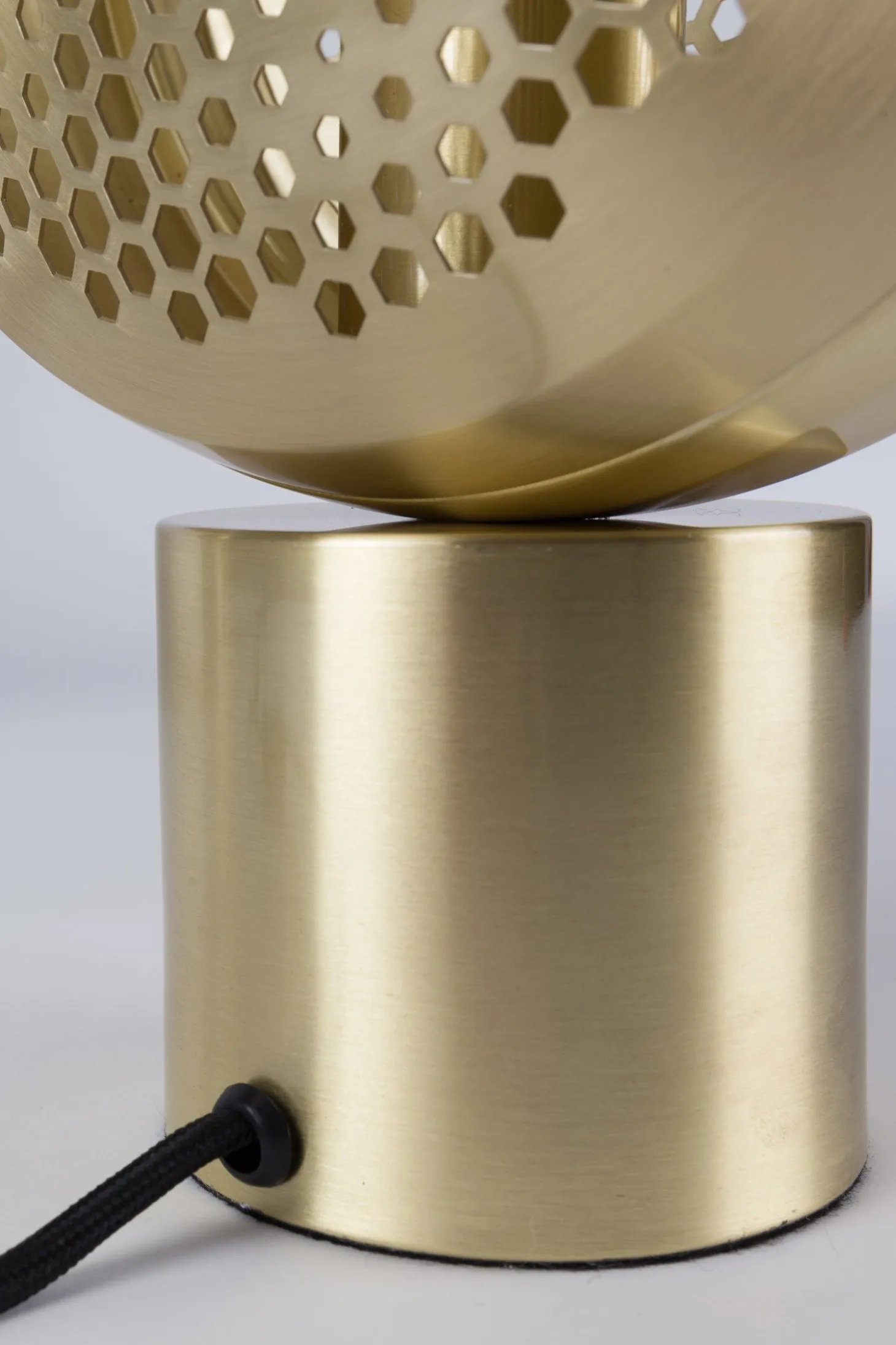 Super flot og enkel bordlampe fra Zuiver. Bordlampen er med messing forgyldt jerngitter og står på en fod af hvid jern. Gringo har et rustikt og urbant udtryk og kan bruges som et hyggeligt element i indretningen. Lampens ledning er sort og har en længde på 150 cm. På ledningen sidder en on/off knap, så du kan tænde og slukke for lampen direkte.