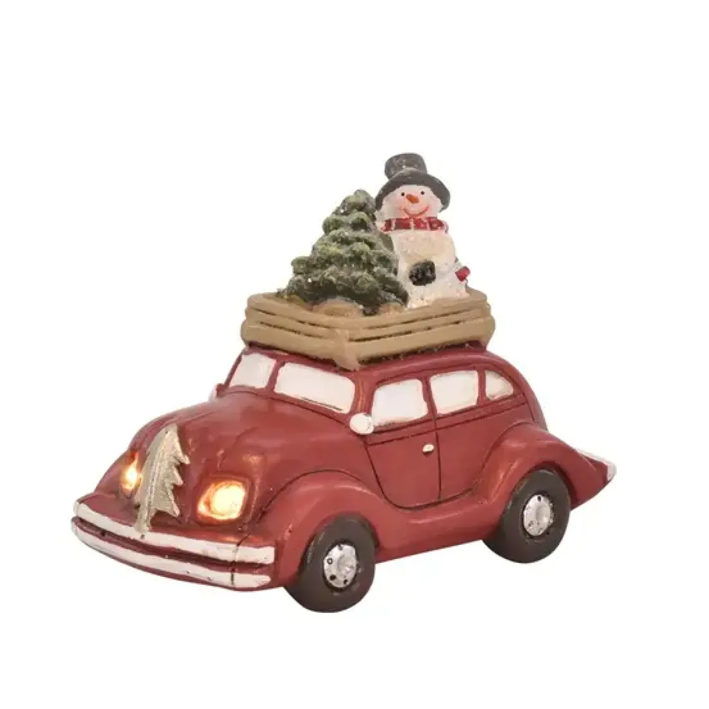 Denne lille røde bil fra 2Have bringer traditionel julestemning til dit hjem. Med en miniature-snemand og et juletræ på taget får du en julefigur med charme og nostalgi. Bilen måler 10 x 6,5 cm og passer derfor ind på hylder, vindueskarme eller mellem andre dekorationer.