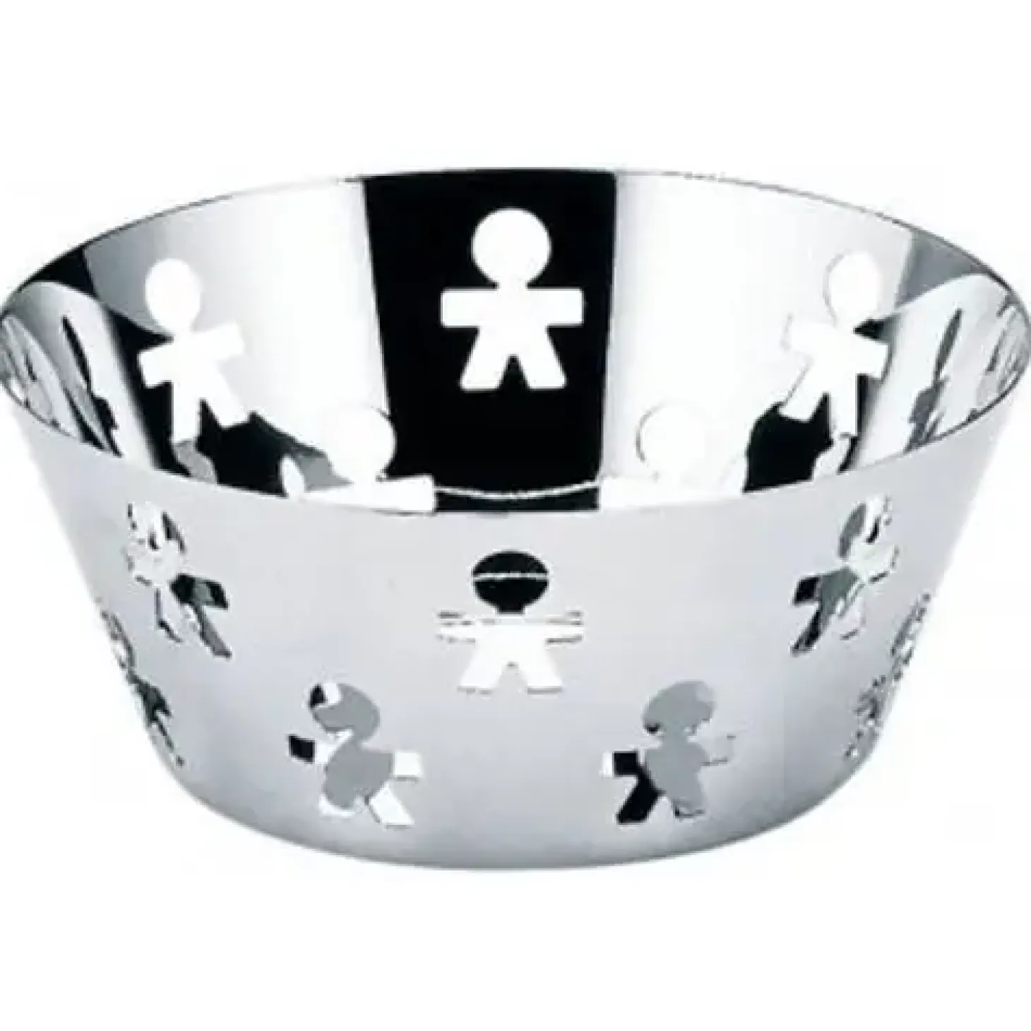Skålens højde på 8,8 cm giver god kapacitet uden at optage for meget plads. Den blanke overflade reflekterer lyset og fremhæver de små figurer, der er karakteristiske for designsamarbejdet mellem King Kong og Alessi.