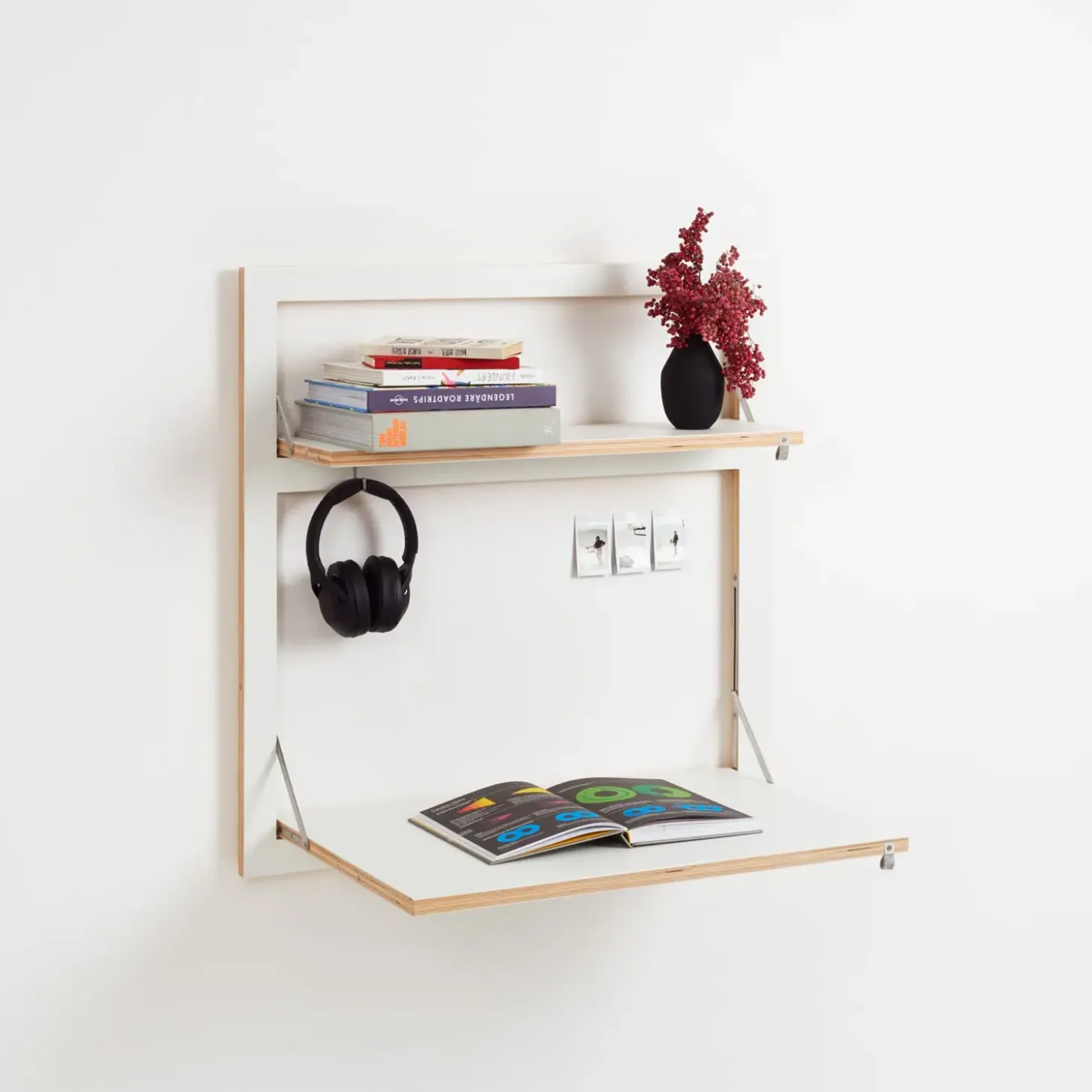 Super skøn arbejdsstation fra Ambivalenz. Kan bruges som hylde, skrivebord eller kreativ arbejdsstation. Er også ideel til børneværelset, hvor der kke er plads til et stort skrivebord. Fold ud når du har brug for det og op igen, når du er færdig.