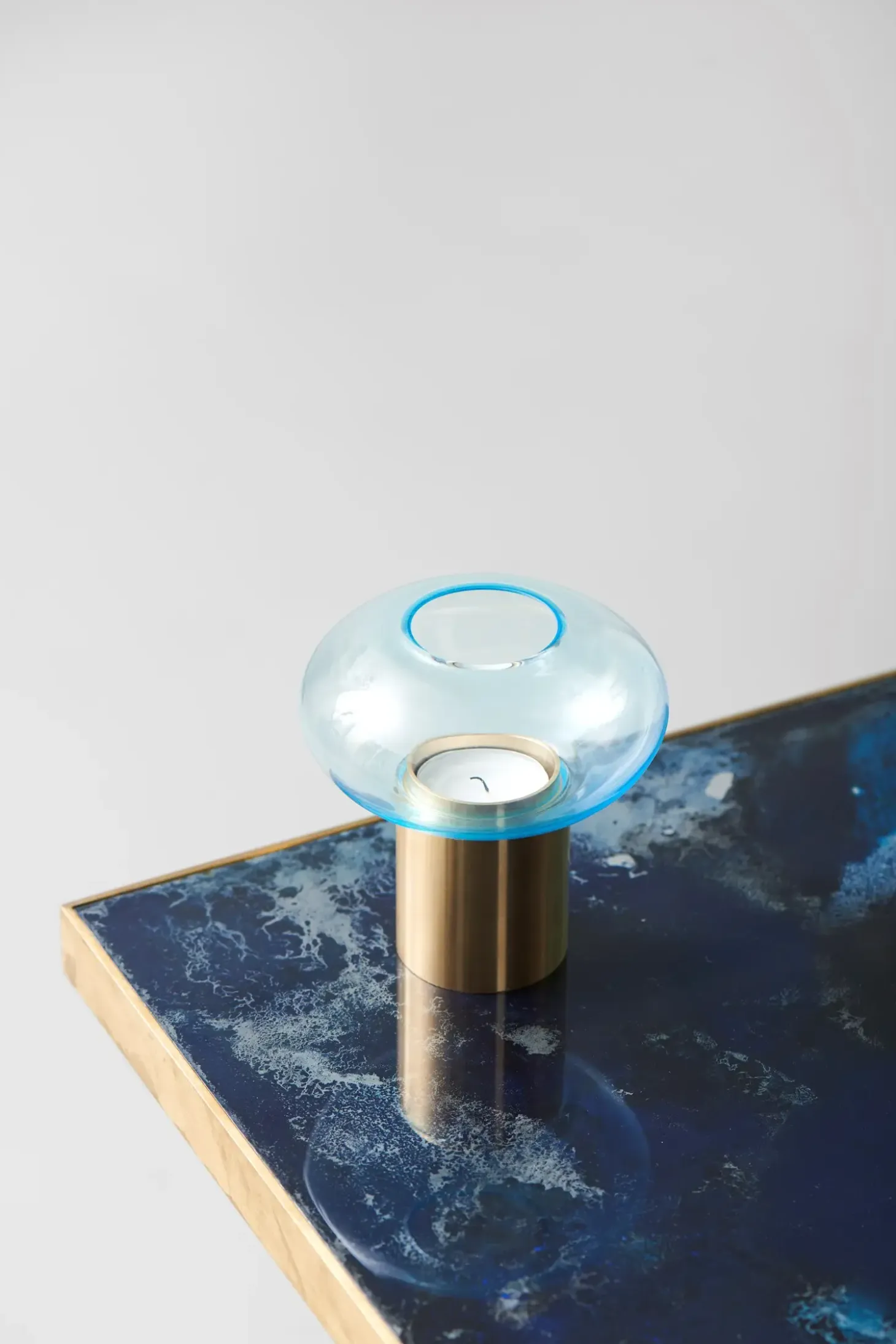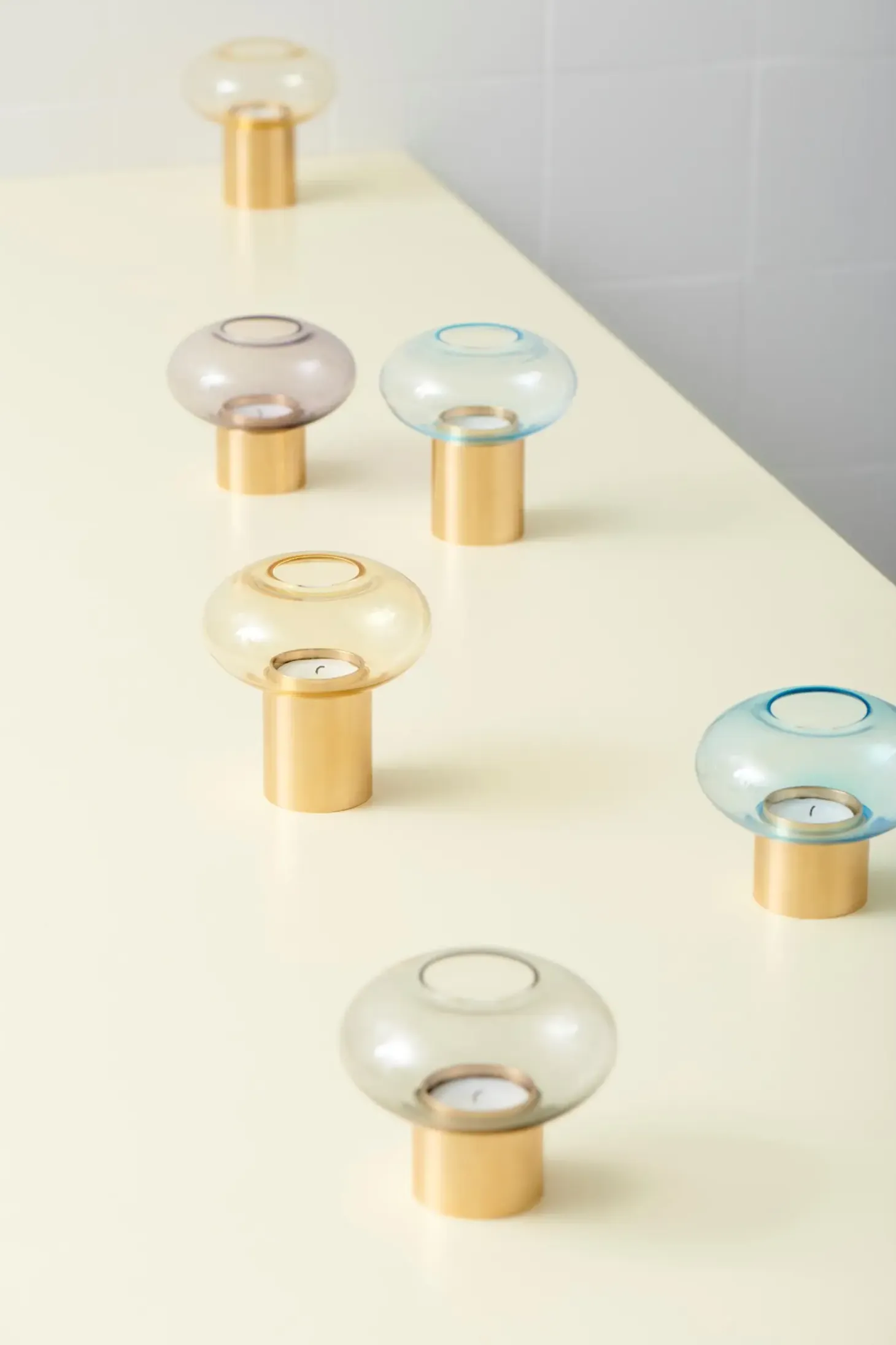 Applicata Mush Hurricane fyrfadsstage – Str M – blå glas – messing