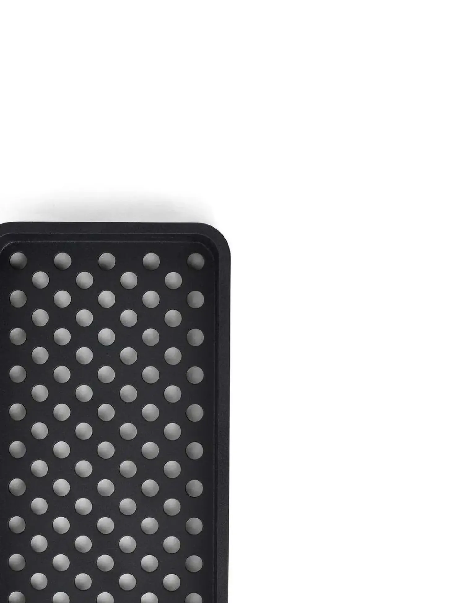 Superfin bakke til badet fra Audo. Denne bakke er en rigtig god løsning, når det kommer til opbevaring af sæbe, barberblade og andre badeværelsesprodukter. Designet er enkelt og moderne, hvilket appellerer til en minimalistisk æstetik. Den sorte bakke har en glat overflade og en række små huller i den øverste del, som gør den praktisk til badeværelset.