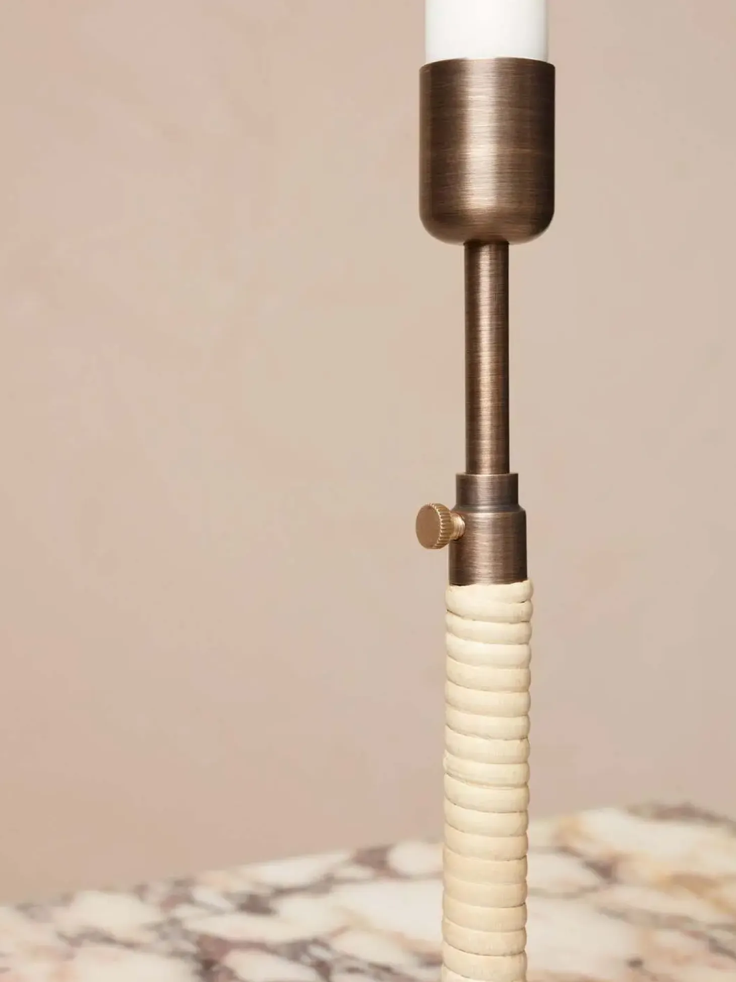 Den justerbare højdefunktion gør denne lysestage alsidig og praktisk. Ved at løsne skruen i midten kan du nemt tilpasse højden fra 16,5 cm til 24 cm, så den passer ideelt til forskellige lys og indretningsstile.