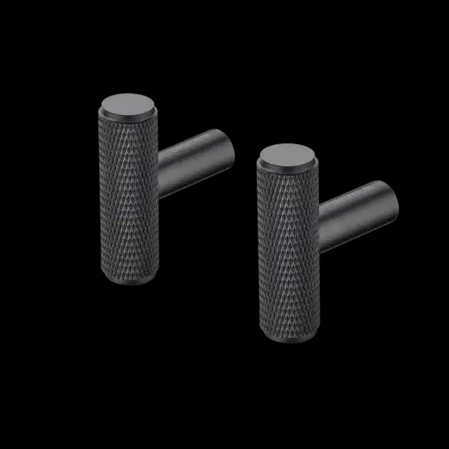 Den cylindriske form og den sorte finish giver krogene et tidløst udtryk. Konstruktionen i metal og jern sikrer, at krogene kan holde til daglig brug og tunge håndklæder uden at miste deres styrke eller stabilitet.