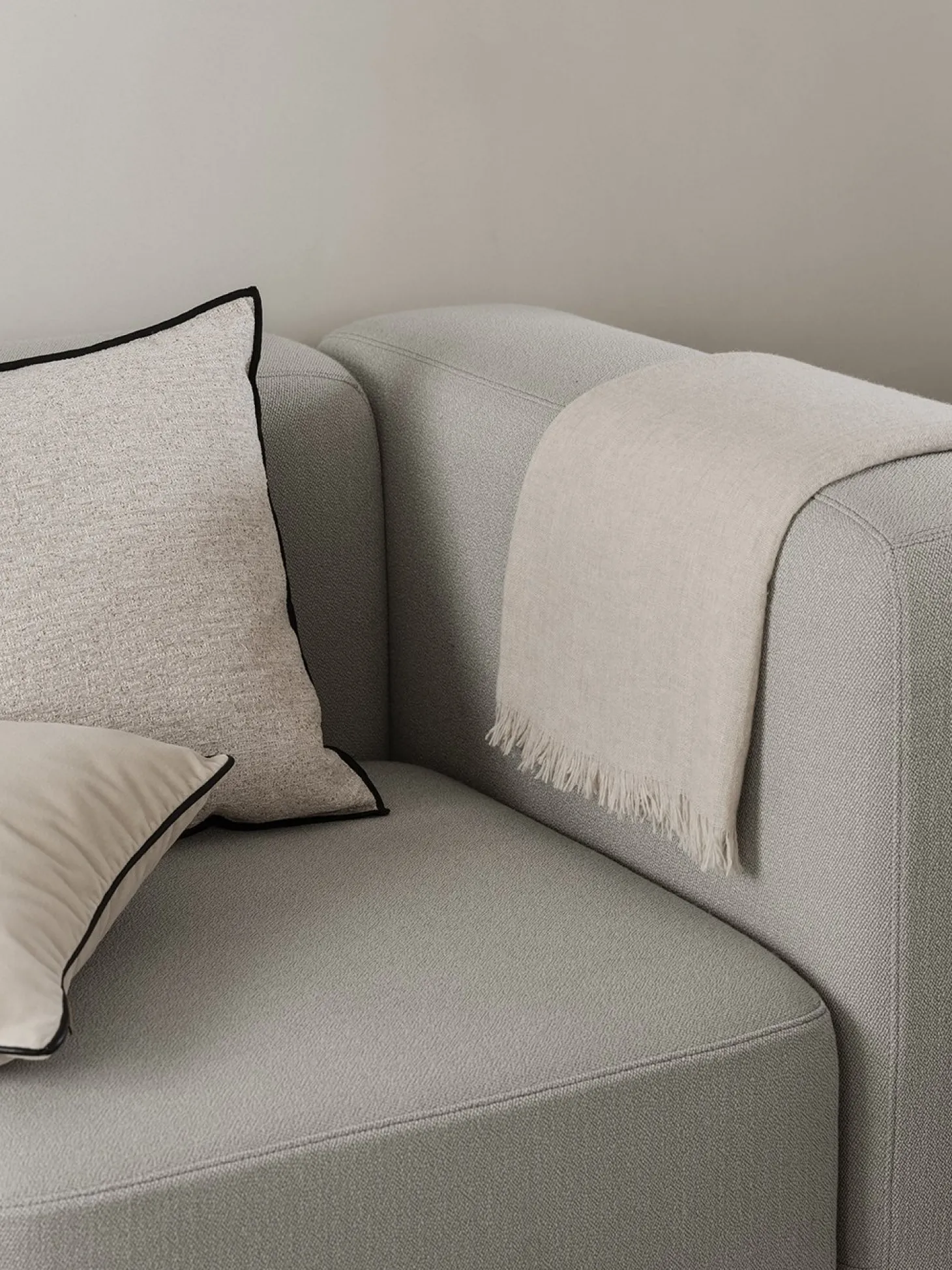 Upåfaldende i forskellige afdæmpede nuancer, er dette afslappede kast perfekt til at putte sig på kølige dage eller aftener, lige når det bliver lidt køligere. Et fint uldkast i meleret fnug; denne er lavet af en blanding af 85% Merinould og 15% Cashmere og imponerer med sin blide beskedenhed. Merinoulden er Mulesing-fri og blev forarbejdet og vævet udelukkende i Italien. Mulesing fri merinould.