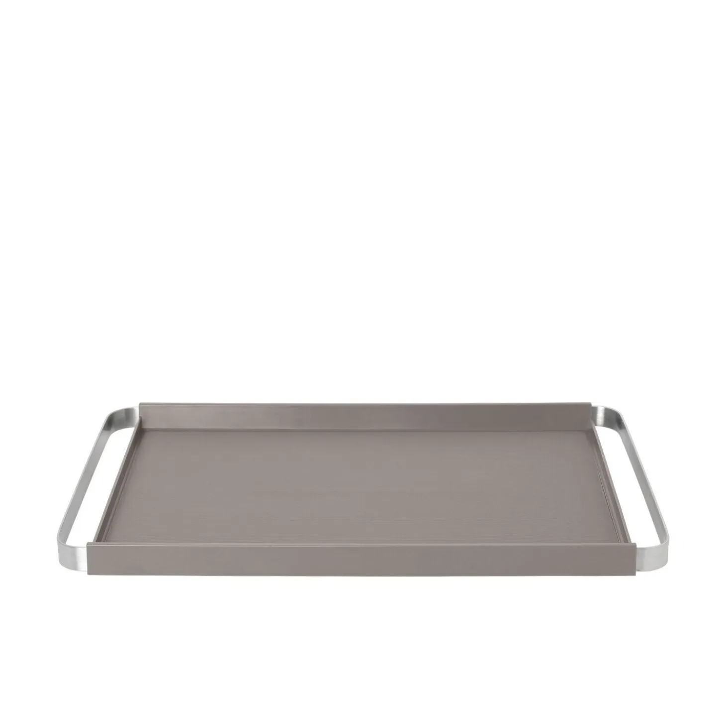Alle hjørner og kanter: Materialekombinationen af rustfrit stål og plast i moderne grå giver PEGOS-bakken et moderne og tidløst look. Praktisk: Den skridsikre silikoneoverflade forhindrer glas og service i at glide rundt på bakken. Fås også i en mørkere grå.