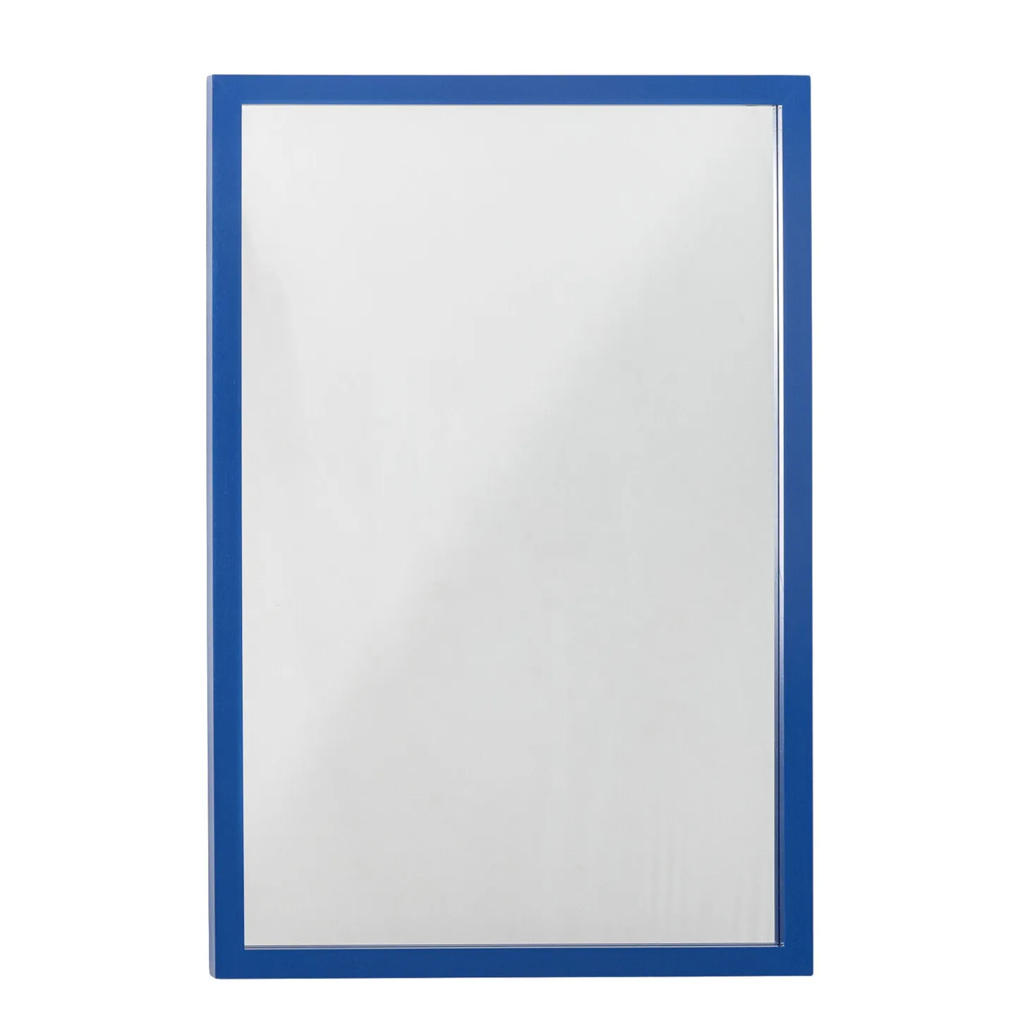 Den blå ramme fungerer som et dekorativt element, der kan blive et naturligt samlingspunkt i rummet. Med en dybde på kun 3,5 cm sidder spejlet tæt på væggen og skaber en harmonisk integration i din indretning.