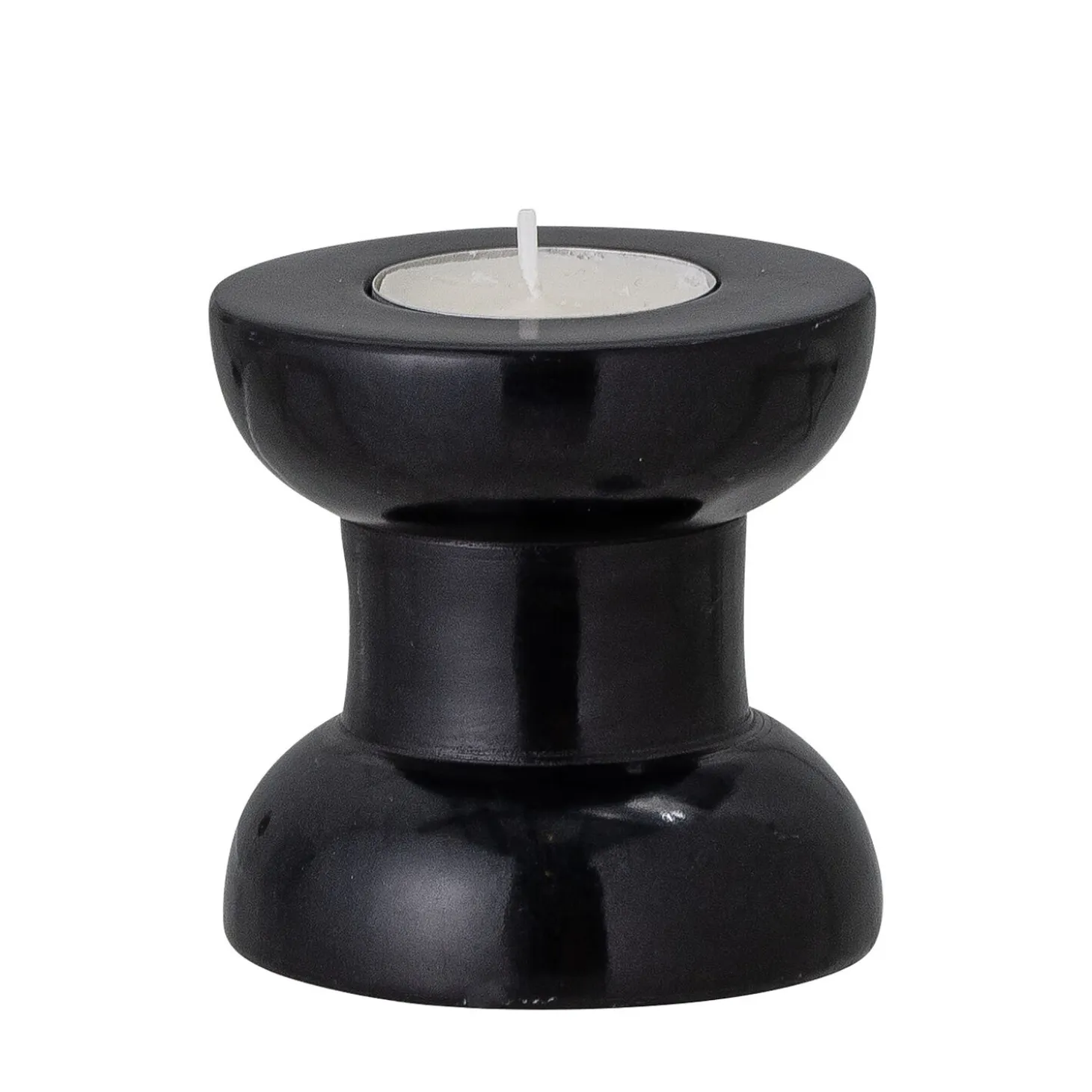 Bailee Votive fra Bloomingville er lavet af fedtsten og har en interessant form af en vægtbalance, med bunden og toppen bredere end kroppen. Dens sorte finish vil give et meget elegant udseende til dit lyss skær.