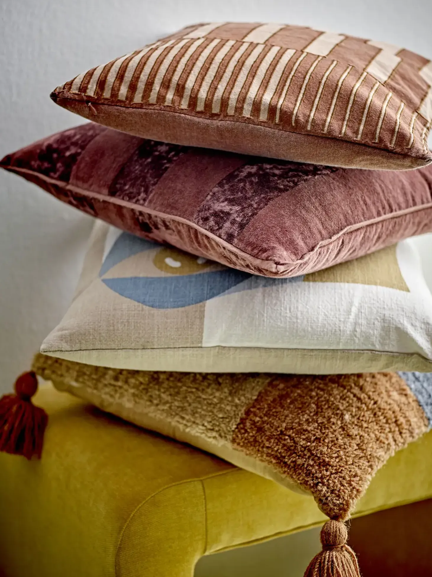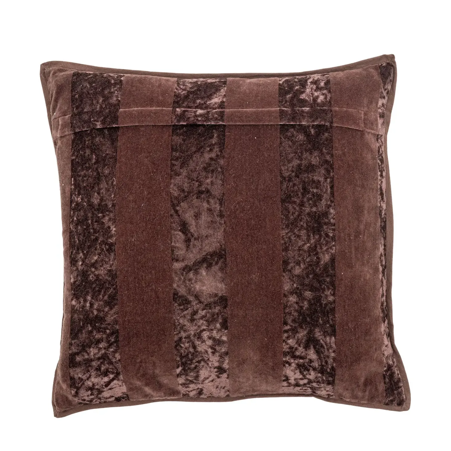 Denne kvadratiske pude fra Bloomingville kombinerer fløjl og lærred i et stribet design, der skaber en spændende kontrast mellem matte og skinnende overflader. Den brune farvetone passer naturligt ind i forskellige indretningsstile.