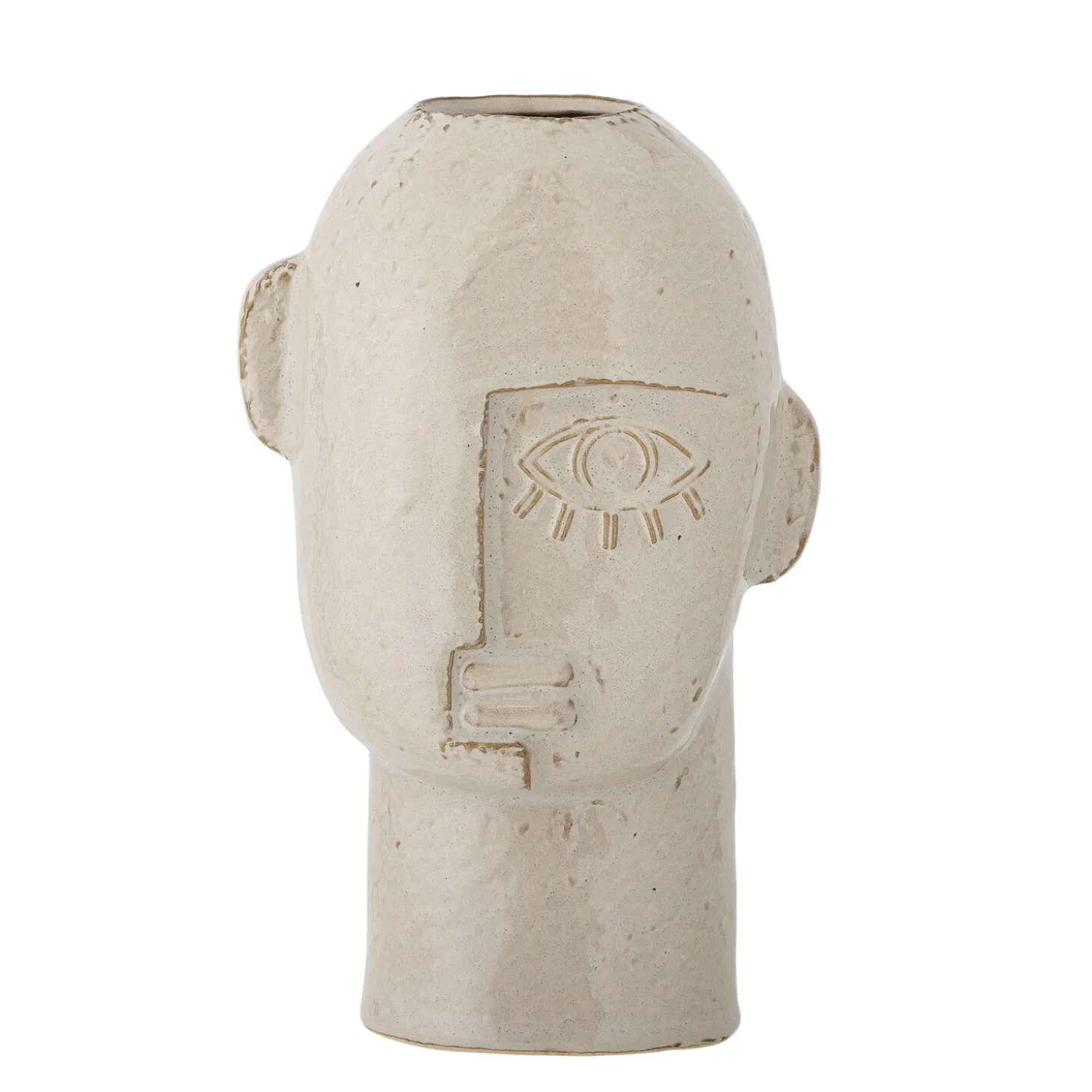 Vasens størrelse gør den velegnet til både større og mindre blomsterbuketter. Det karakteristiske ansigtsdesign tilfører et kunstnerisk element til din indretning, mens den neutrale farve skaber ro i udtrykket.