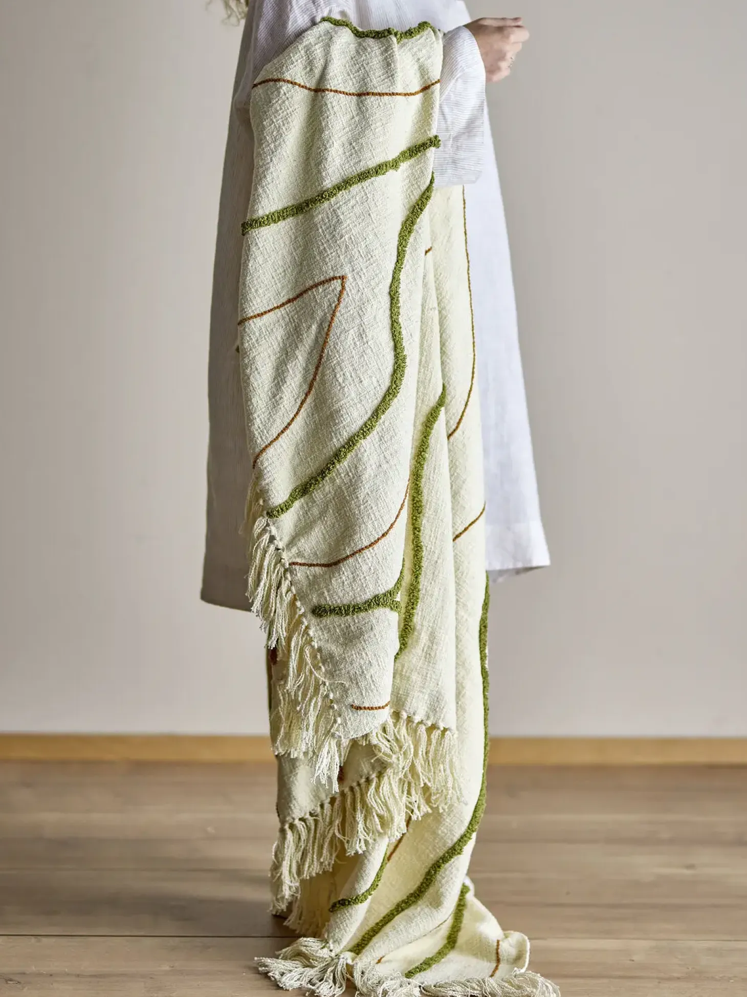 Denne bomuldsplaid fra Bloomingville er fremstillet af 100 % bomuld. Den vævede finish giver plaiden en karakteristisk tekstur, der bliver blødere med tiden. Materialet er åndbart, hvilket gør plaiden anvendelig året rundt.