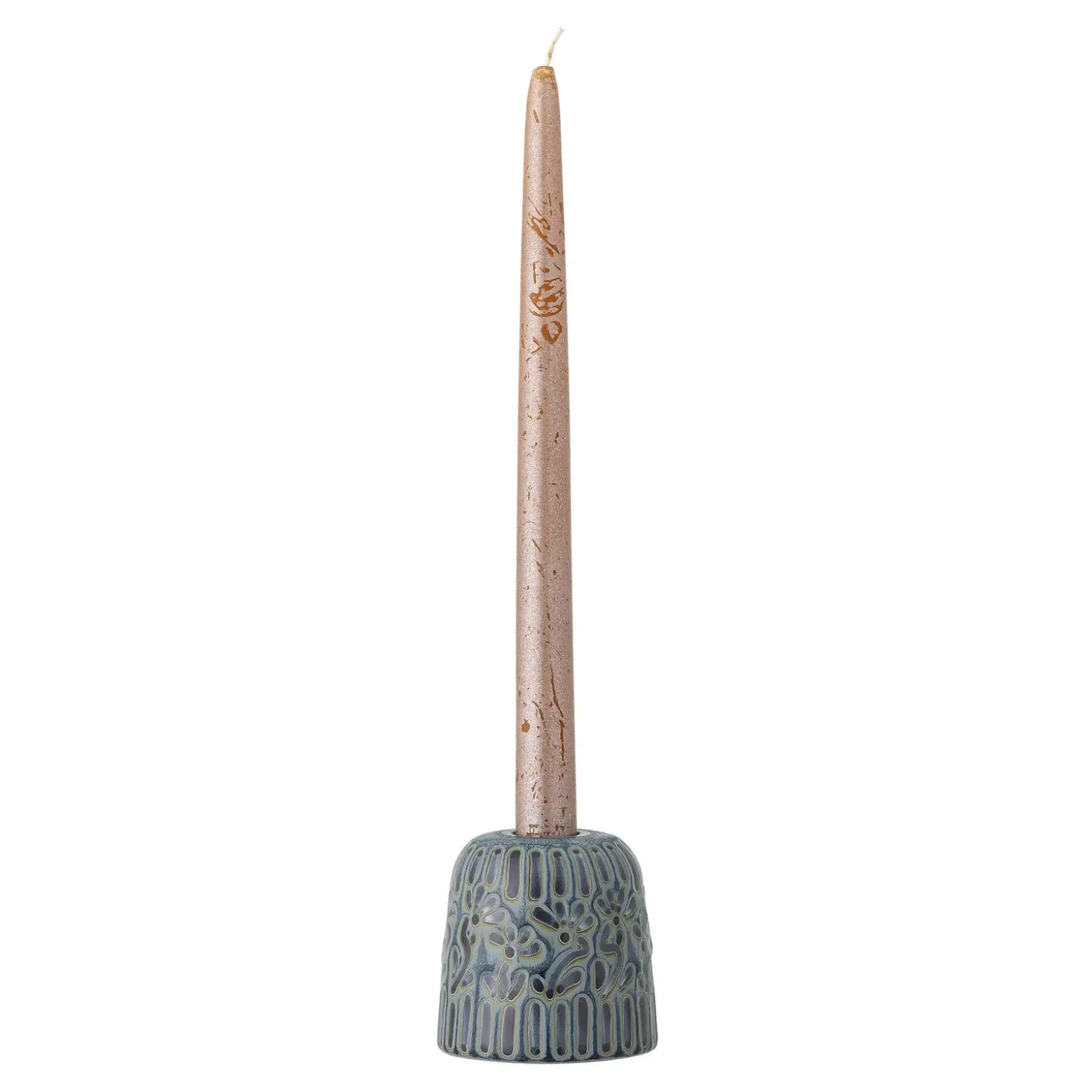 Denne håndlavede lysestage i blå stentøj bringer kunstnerisk karakter til dit hjem. Den reaktive glasur skaber et præget blomstermønster, der gør hver lysestage særpræget. Stentøjets robuste egenskaber sikrer lang holdbarhed.