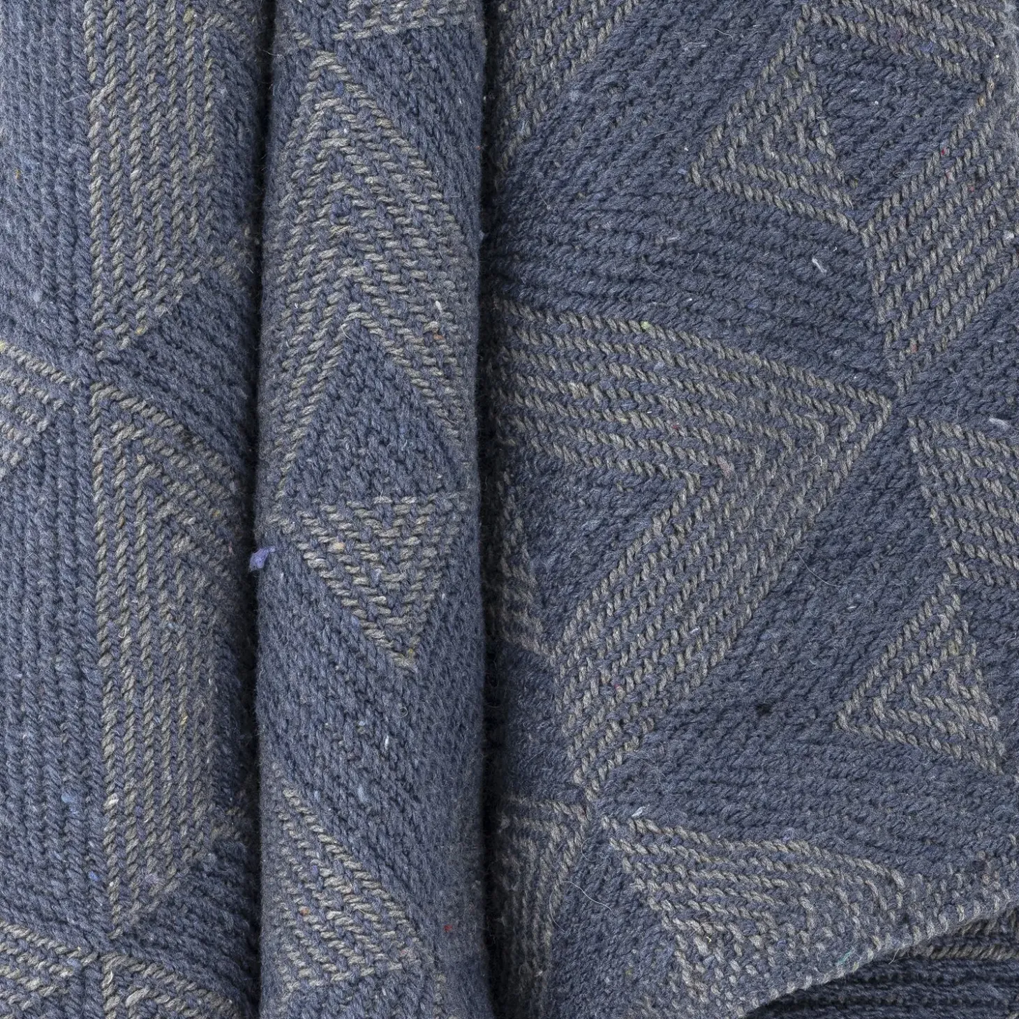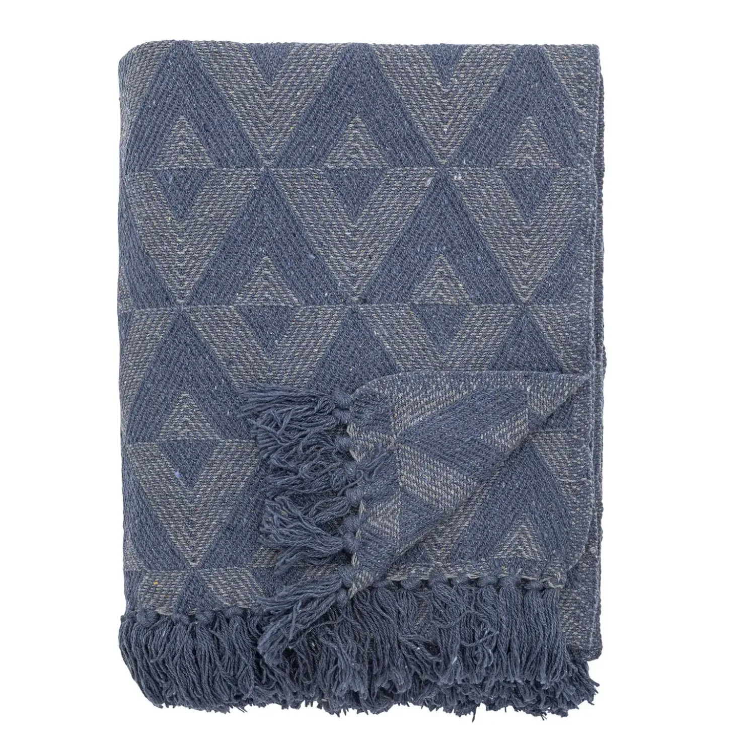 Plaidet er fremstillet af genanvendt bomuld og blandede fibre, der giver en blød og behagelig fornemmelse. Det geometriske mønster med trekanter og de dekorative frynser langs kanterne skaber et moderne udtryk, der passer til forskellige indretningsstile.