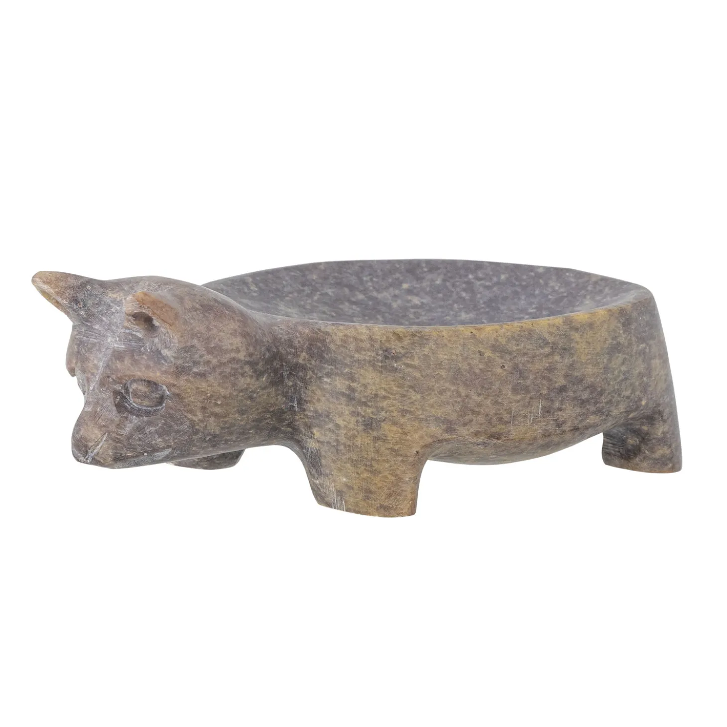 Denne håndlavede skål i fedtsten kombinerer det praktiske med det kunstneriske. Den katteinspirerede form giver din servering et særligt udtryk, mens materialet sikrer holdbarhed i hverdagen. Med målene 12,5 x 8 x 4,5 cm passer skålen til forskellige serveringsformål.