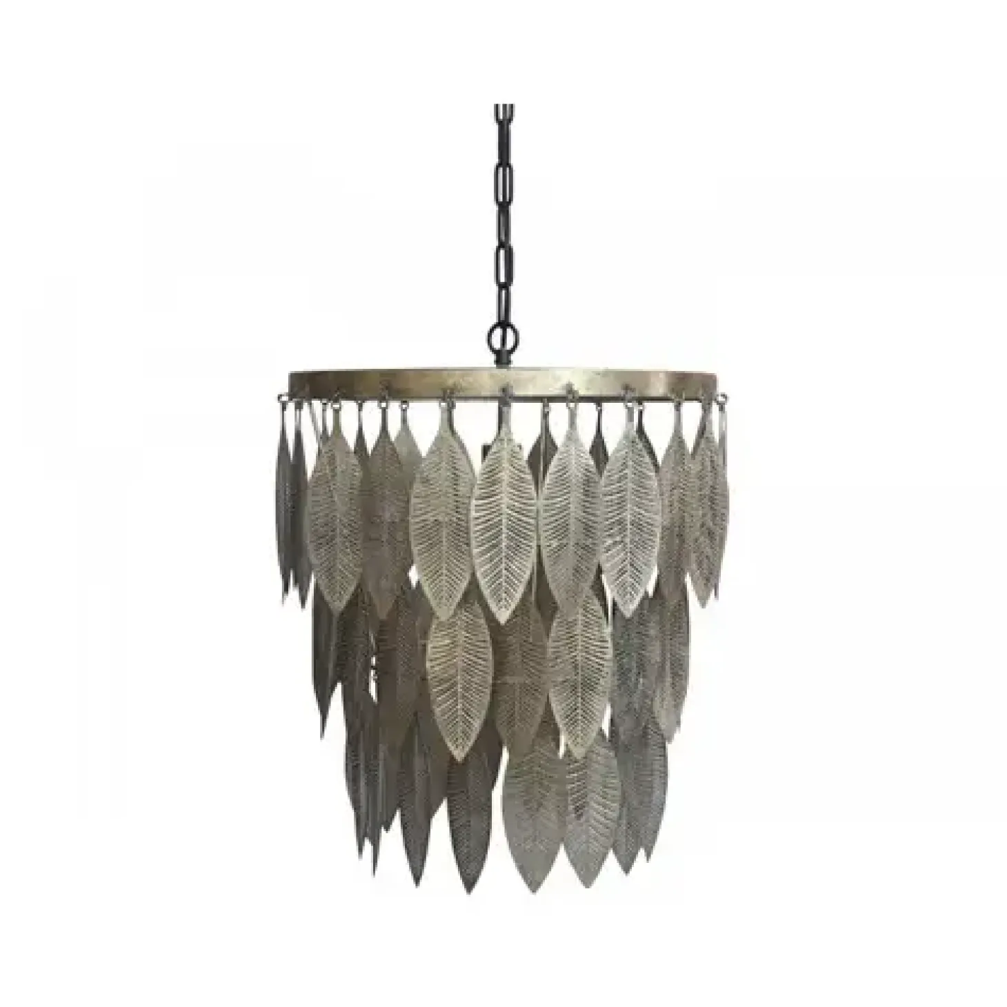 Super flot lampe i antique messing fra Chic Antique. Lampen har smukke detaljer og de små blade giver et helt unikt udseende. Lampen kan bruges forskellige steder i din indretning. Den ville være rigtig fin som spisebordslampe, men vil også kunne hænges i et hjørne og bruges som hyggebelysning. Lampen findes også i en mindre udgave.