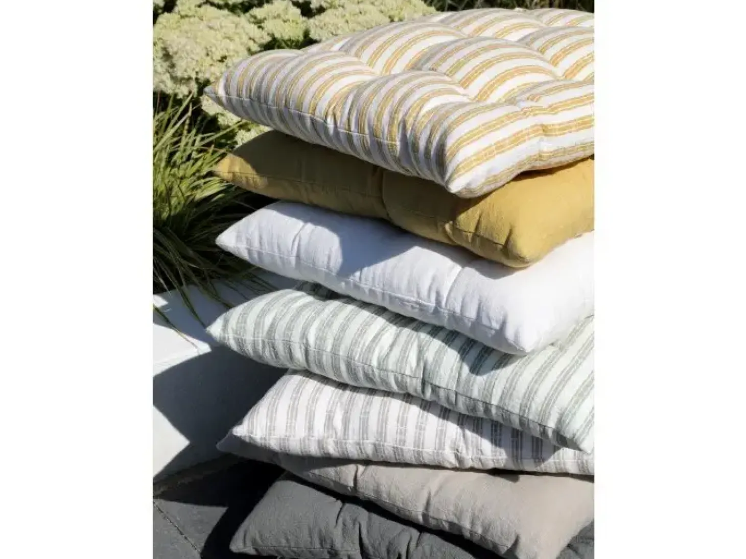 Super fin hynde fra Chic Antique. Hynden har bindebånd så du kan sikre den til din havestol. Hynden gør, at du kan sidde behageligt på havestolen og at du uden problemer kan sidde og grille mens du nyder solen på terrassen i flere timer.