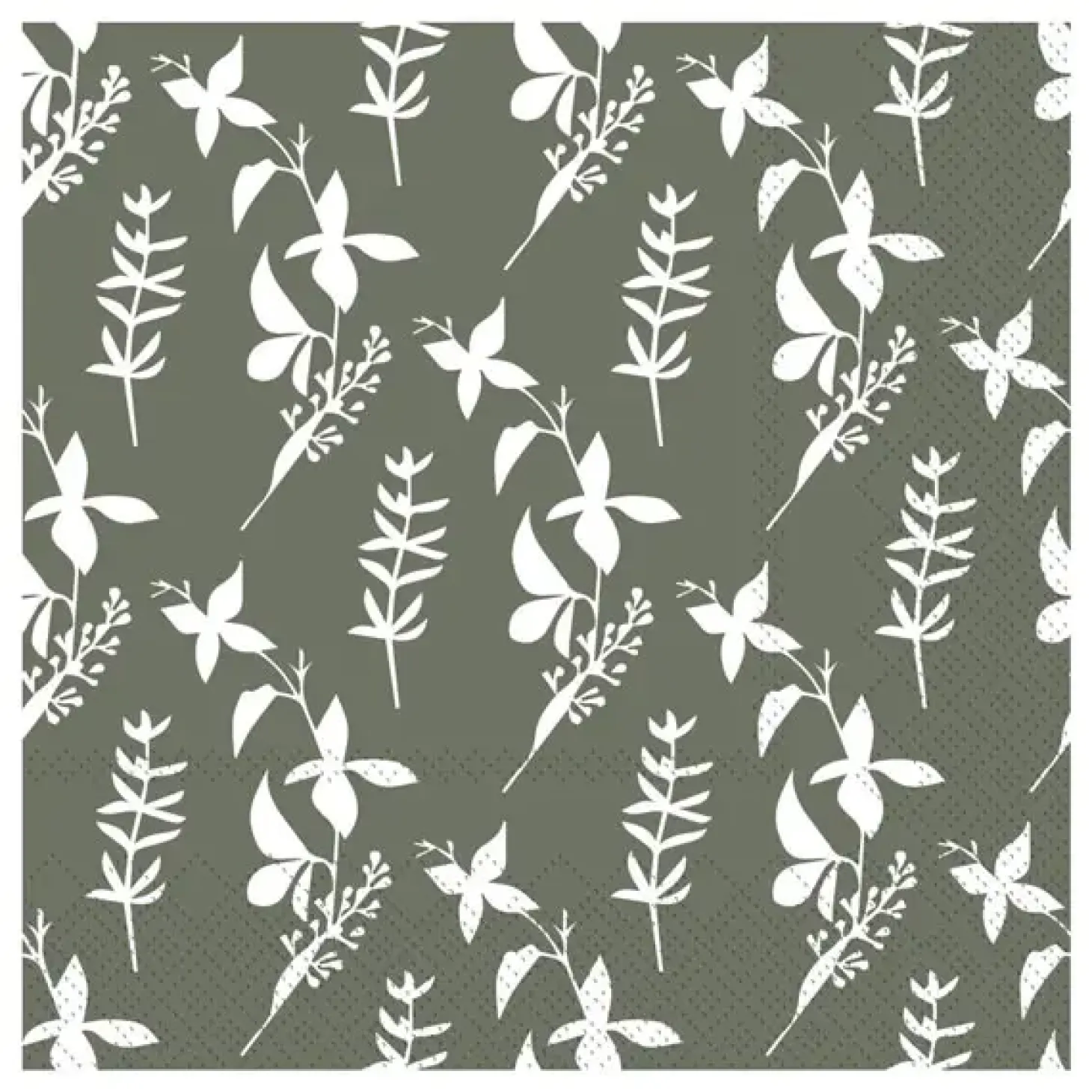 Chic Antique – Serviet – Blomster – 16×16 cm – Mos grøn