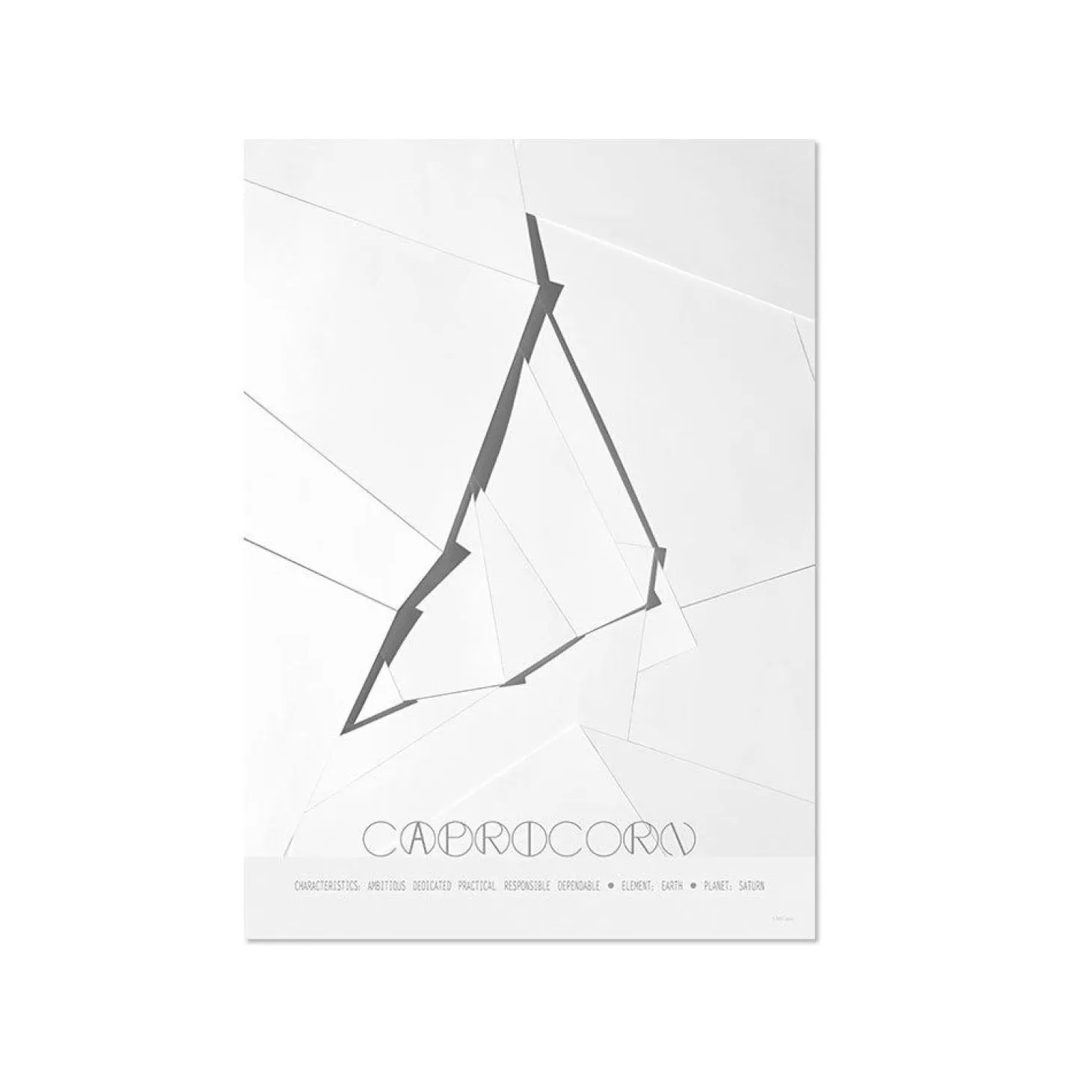 Plakat med stjernetegnet stenbukken fra danske ChiCura. Stenbukken er AMBITIØS, DEDIKERET, PRAKTISK, ANSVARSFULD og PÅLIDELIG.