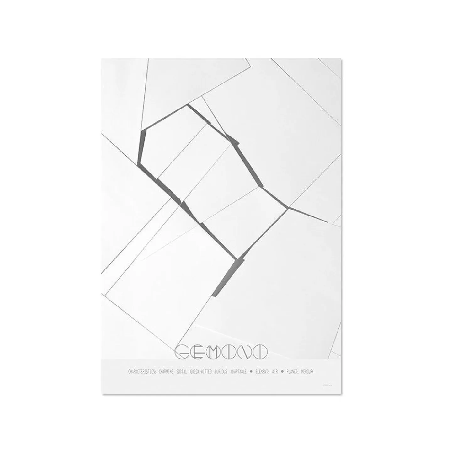 Plakat med stjernetegnet tvilling fra danske ChiCura. Tvillingen er CHARMERENDE, SOCIAL, SLAGFÆRDIG, NYSGERRIG og TILPASNINGSDYGTIG.