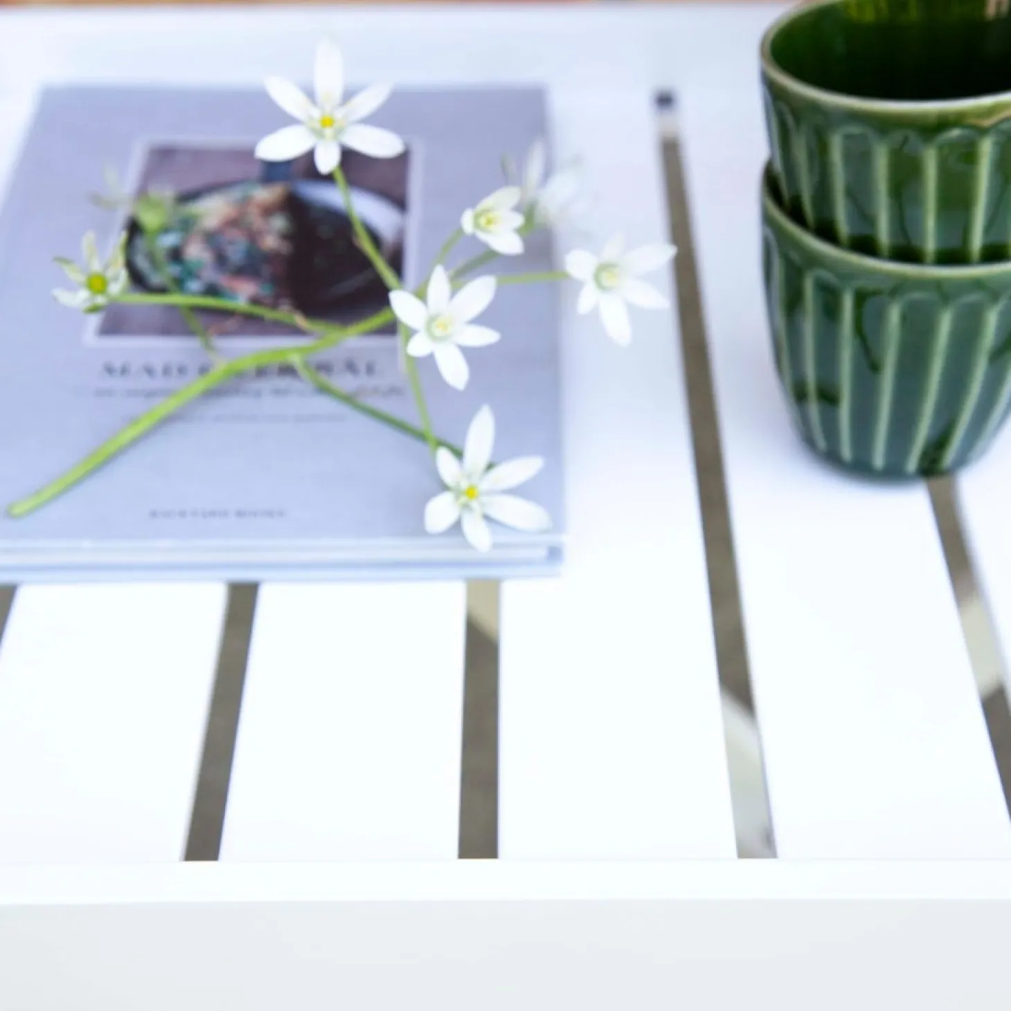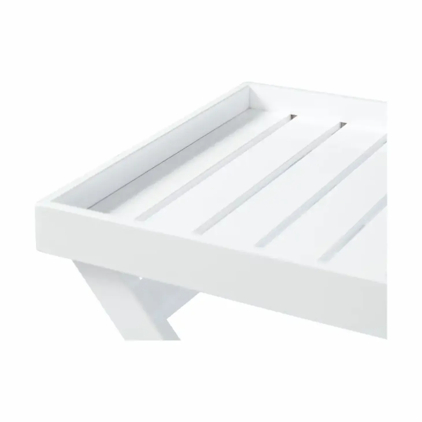 Bordet er kendetegnet ved sin funktionelle udformning. De X-formede ben giver stabilitet, mens overfladen med sit karakteristiske lameldesign tilføjer en interessant detalje. Den hvide PU-glansmaling giver bordet et rent og moderne look, der passer ind i mange indretningsstile.
