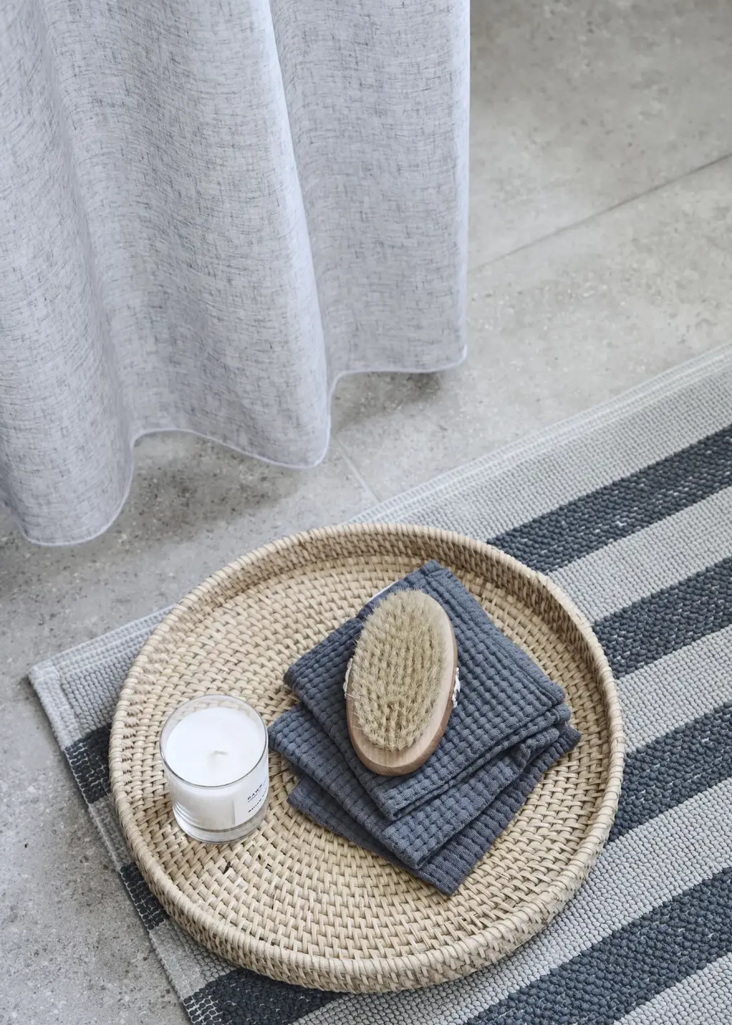 Det grå hør-look giver dit badeværelse et roligt og tidløst udtryk. De 12 påmonterede ringe gør det nemt at hænge forhænget op, og den generøse bredde sikrer, at vandet bliver, hvor det skal være. Husk at købe kroge til ophængning separat.