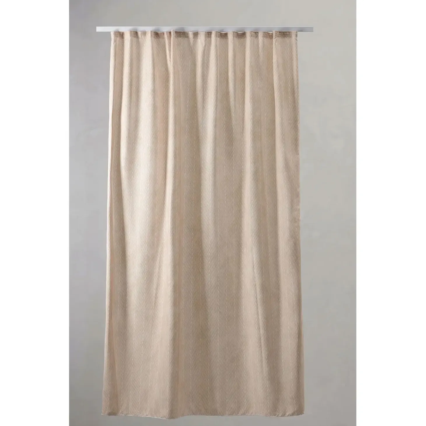 Det karakteristiske sildebensmønster og den subtile vandeffekt skaber et roligt udtryk i dit badeværelse. Mønsteret er printet med omhu, så det fremstår tydeligt og holdbart, selv efter gentagne vaske. Den neutrale farve går hånd i hånd med forskellige indretningsstile.