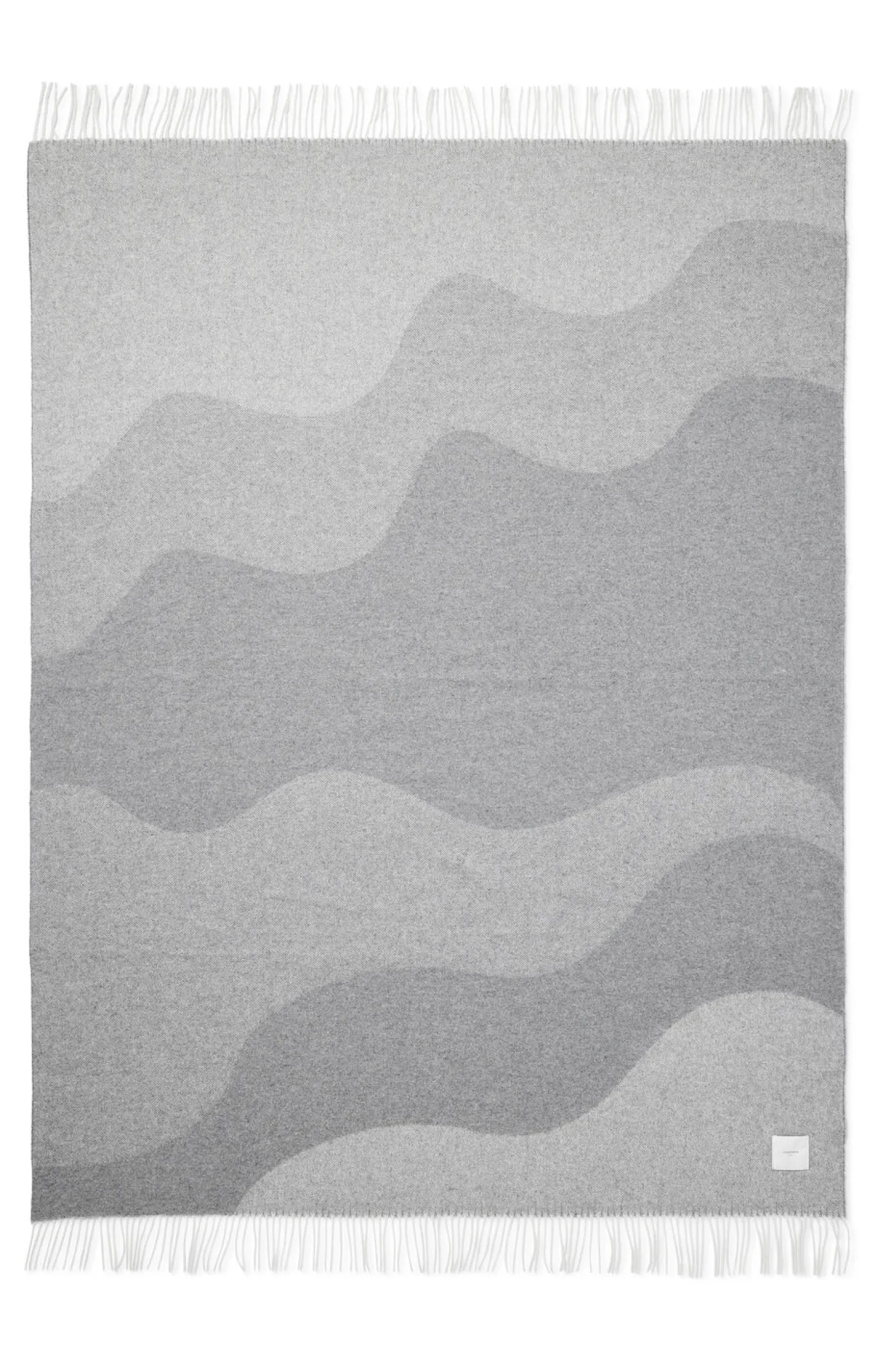 Stor luksuriøs merino uld plaid i enkelt, stilrent design. De smukke bølgende linjer på den elegante Waves plaid henter inspiration i den rå nordiske natur og skaber en unik balance til den bløde tekstur. En ny designklassiker som hurtigt bliver en favorit. Plaiden er i en eksklusiv uldmix i grå nuancer. STANDARD 100 by OEKO-TEX® certificeret.