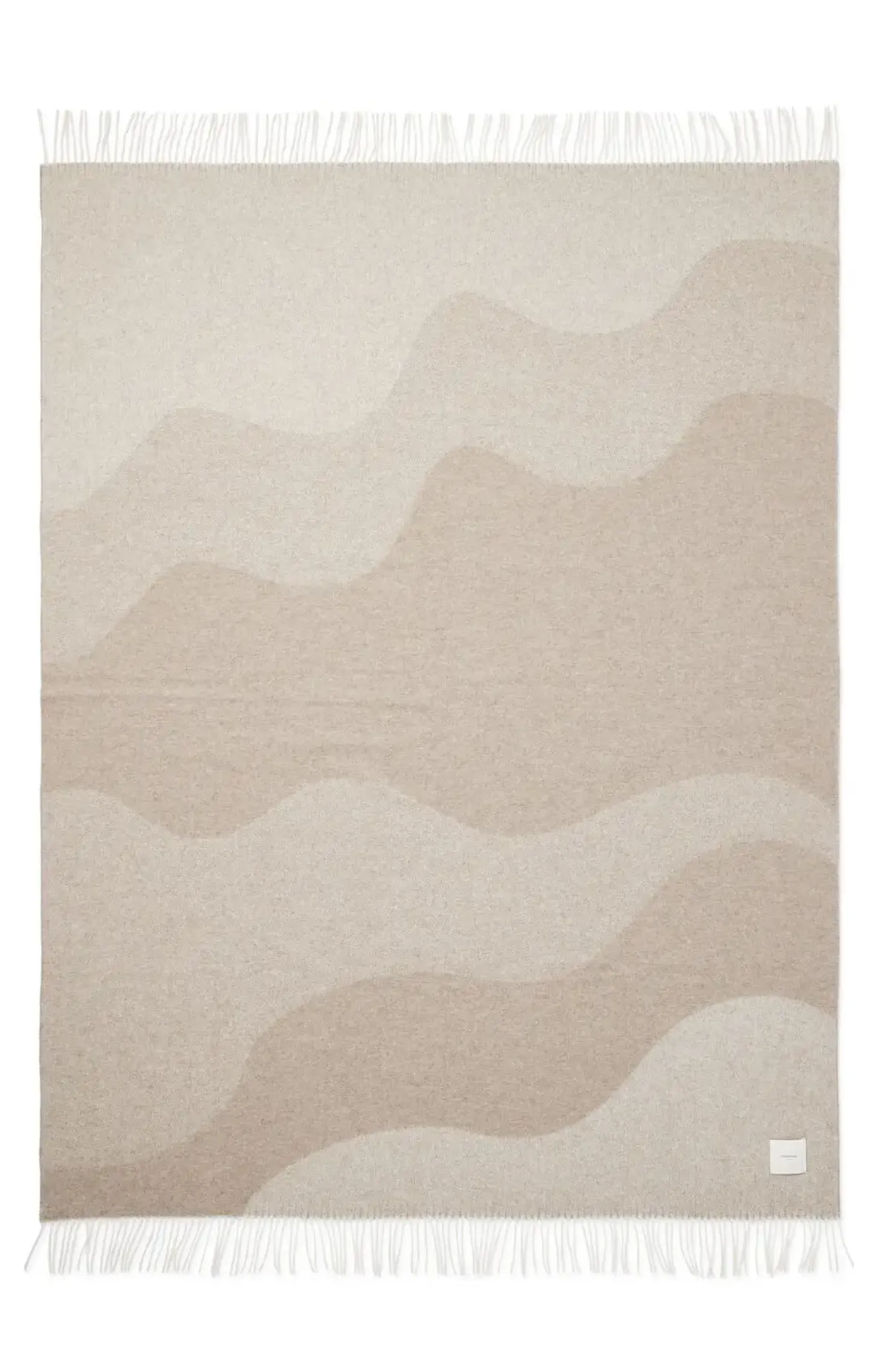 Stor luksuriøs merino uld plaid i enkelt, stilrent design. De smukke bølgende linjer på den elegante Waves plaid henter inspiration i den rå nordiske natur og skaber en unik balance til den bløde tekstur. En ny designklassiker som hurtigt bliver en favorit. Plaiden er vævet i et eksklusivt uldmix i sand nuancer. STANDARD 100 by OEKO-TEX® certificeret.