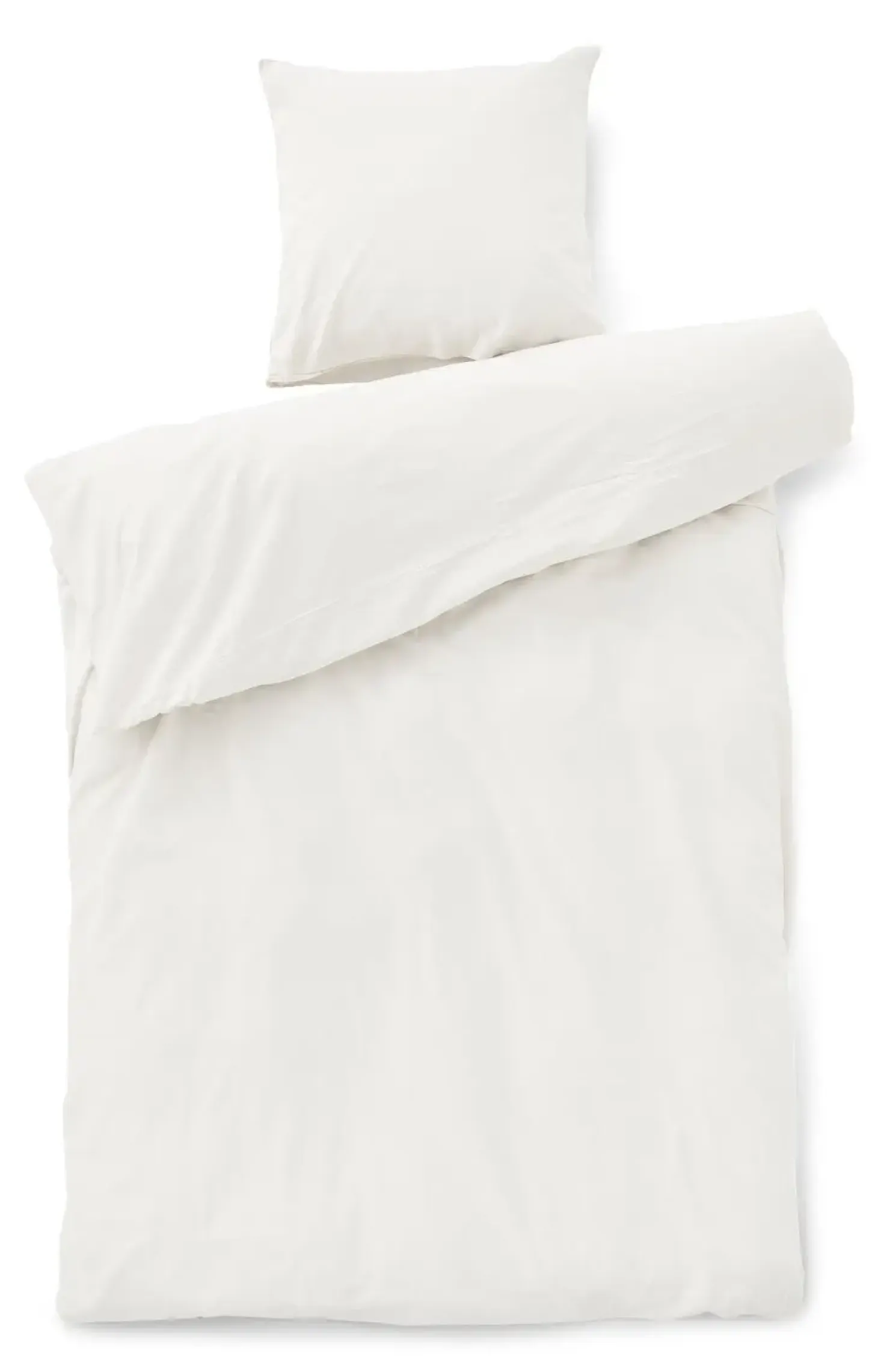 Dette hvide sengetøj fra Compliments er fremstillet af 100% stenvasket bomuld og er certificeret med Standard 100 af Oeko-Tex, så du kan sove trygt uden bekymringer om skadelige stoffer.