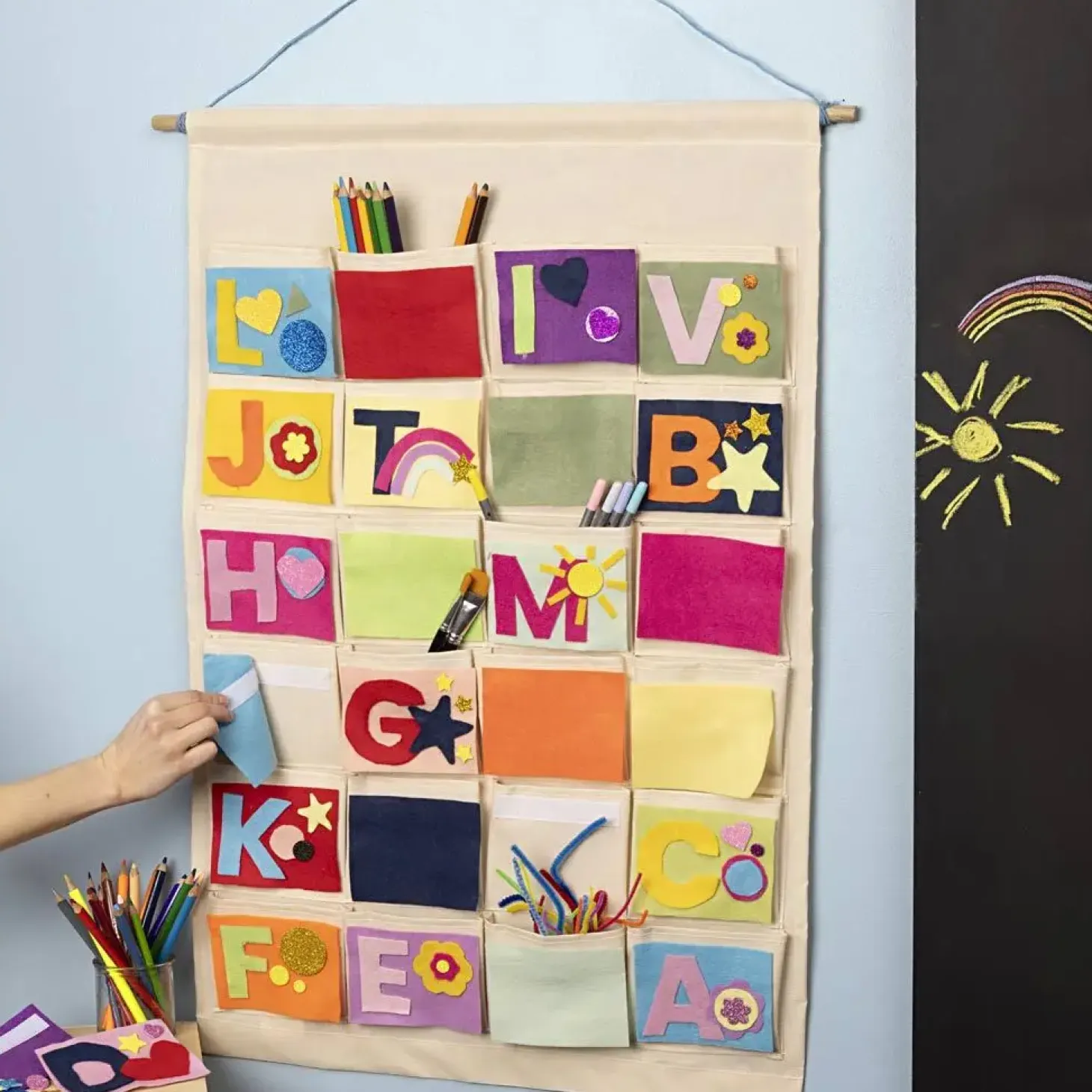 24 lommer giver praktisk og overskuelig opbevaring af forskellige ting. Perfekt til mange formål: brug den som pakkekalender til dit barn, eller til opbevaring af kontorartikler, legetøj, værktøj og andre småting.