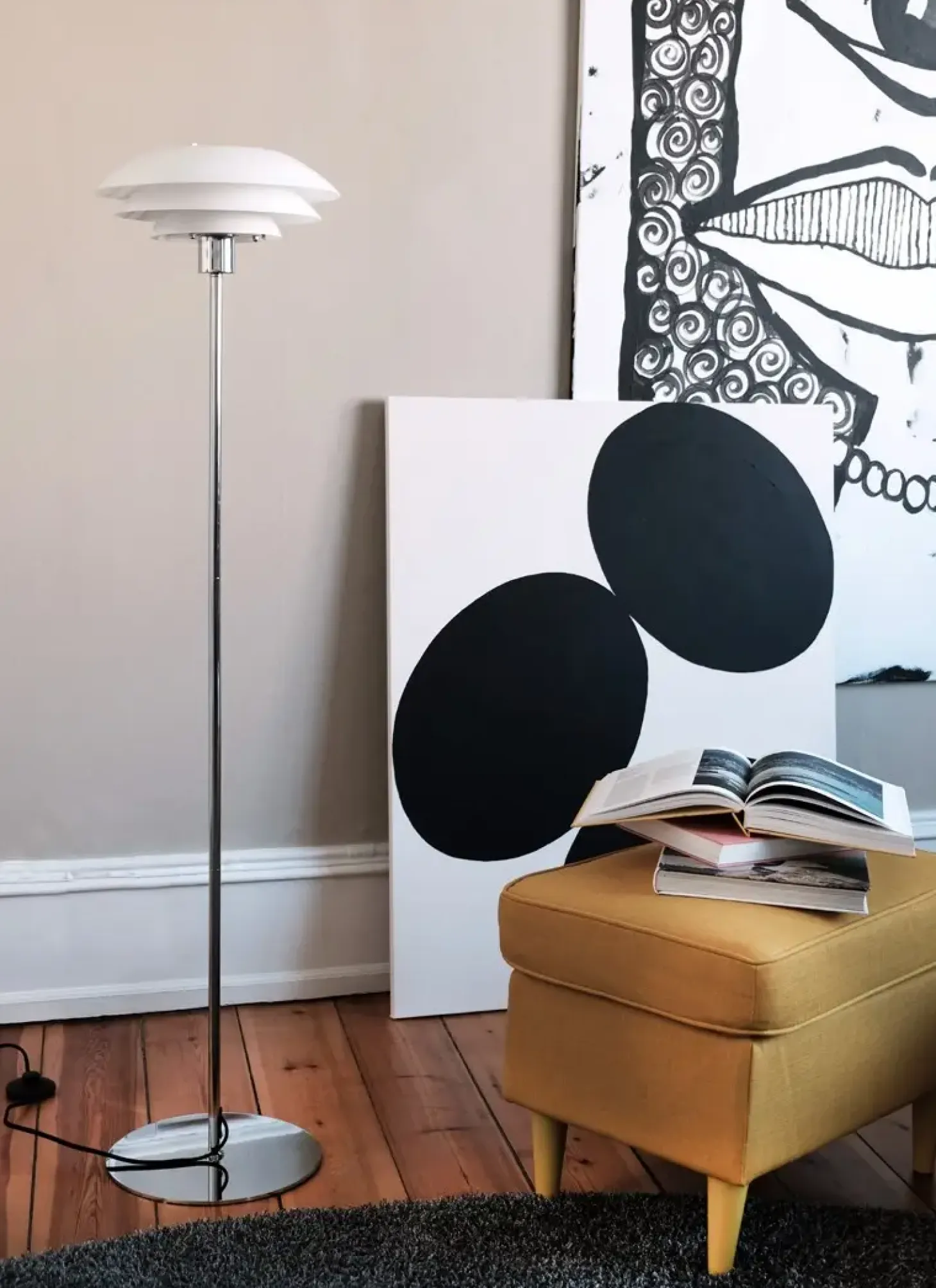 Dyberg Larsen – DL31 Opal gulvlampe – Opal hvid og Krom, Ø: 31 cm x H: 133 cm