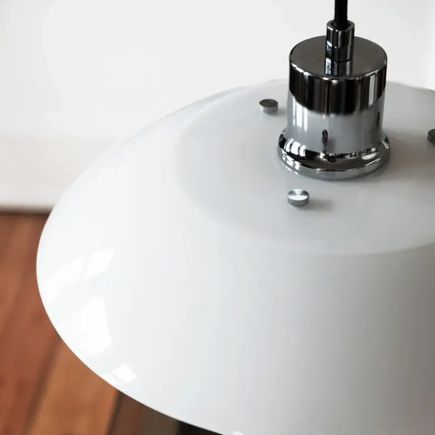 DL31 Opal pendlen giver en varm og hyggelig belysning med sin elegante skærm af mundblæst opalglas. Ideel til at hænge over spise- eller køkkenbordet.