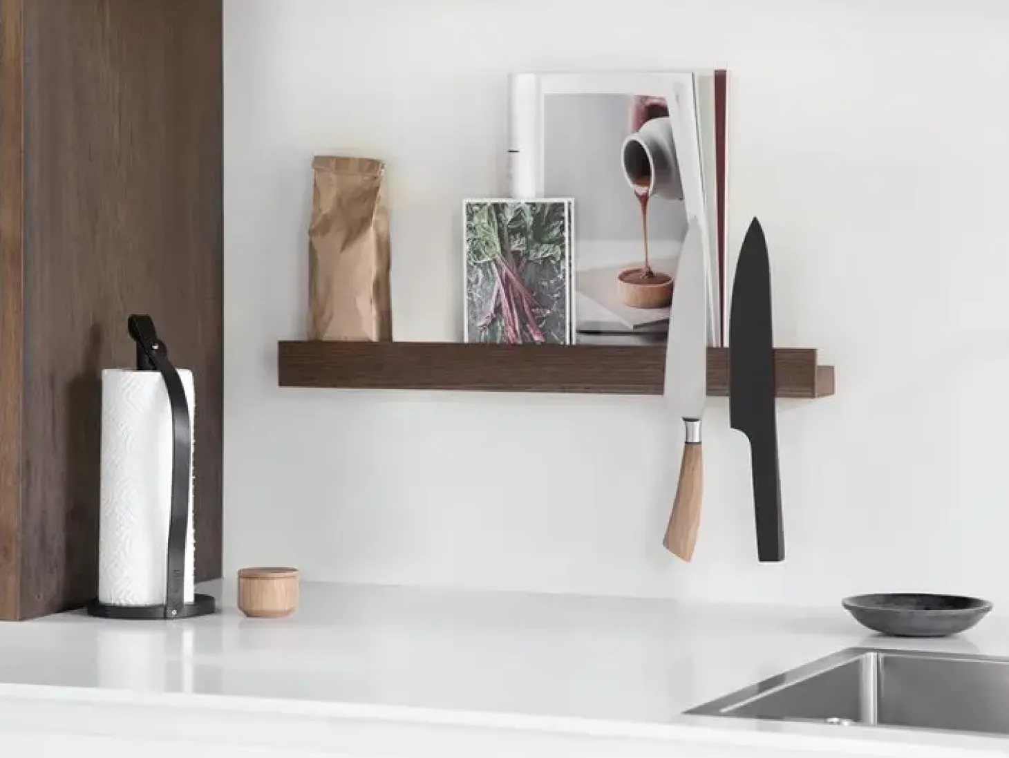 Hvis du mangler plads til dine knive i skufferne, giver denne magnetløsning dig nem adgang til redskaberne. Knivene sidder synligt og tilgængeligt på væggen, hvilket sparer tid, når du skal tilberede mad. Samtidig holder det knivene væk fra andet køkkenudstyr.