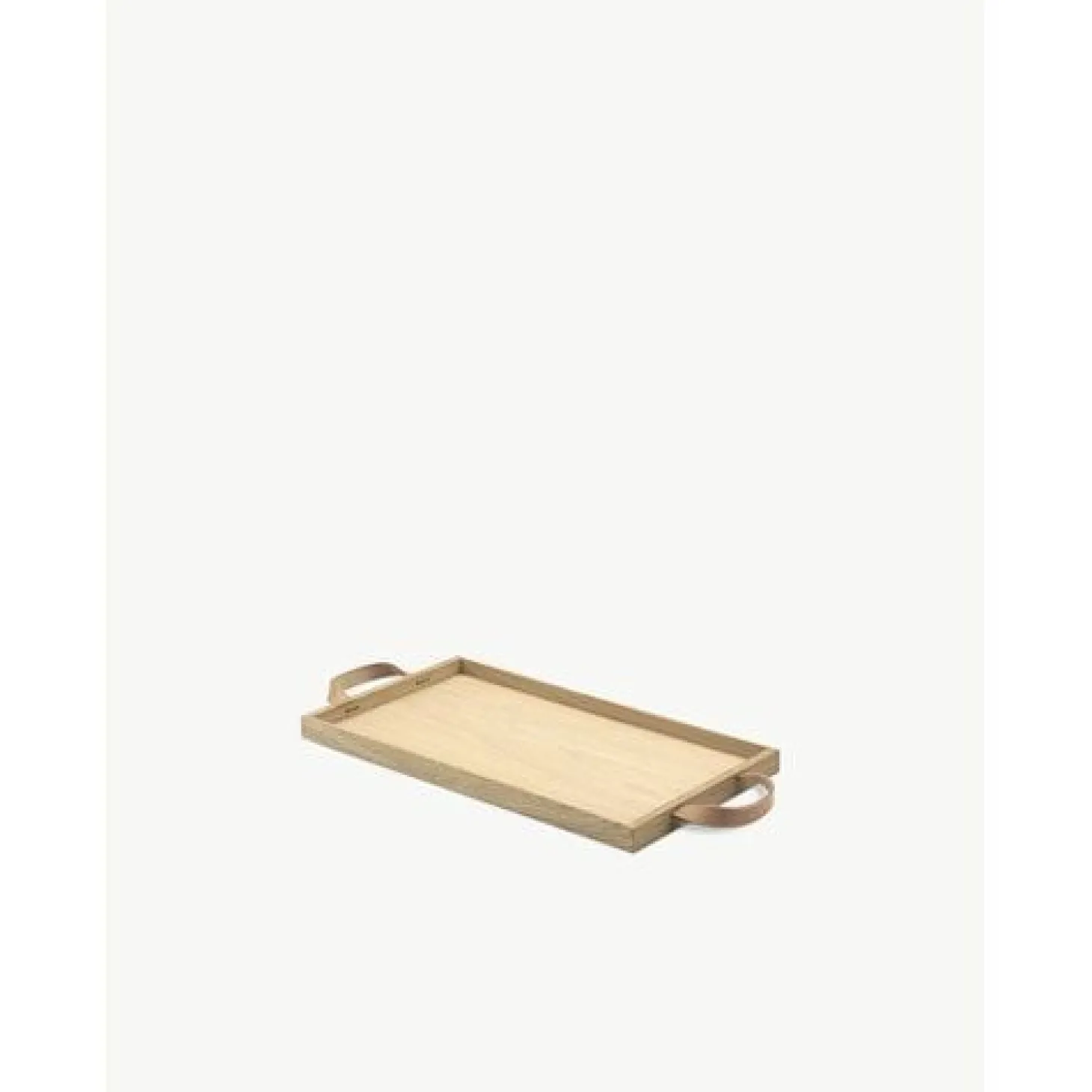 Denne bakke er fremstillet i egetræ med læderhåndtag, der giver dig både funktionalitet og et naturligt udtryk. Med mål på 25,5 cm i bredden, 46 cm i dybden og 2,5 cm i højden passer den til servering og organisering i hjemmet.