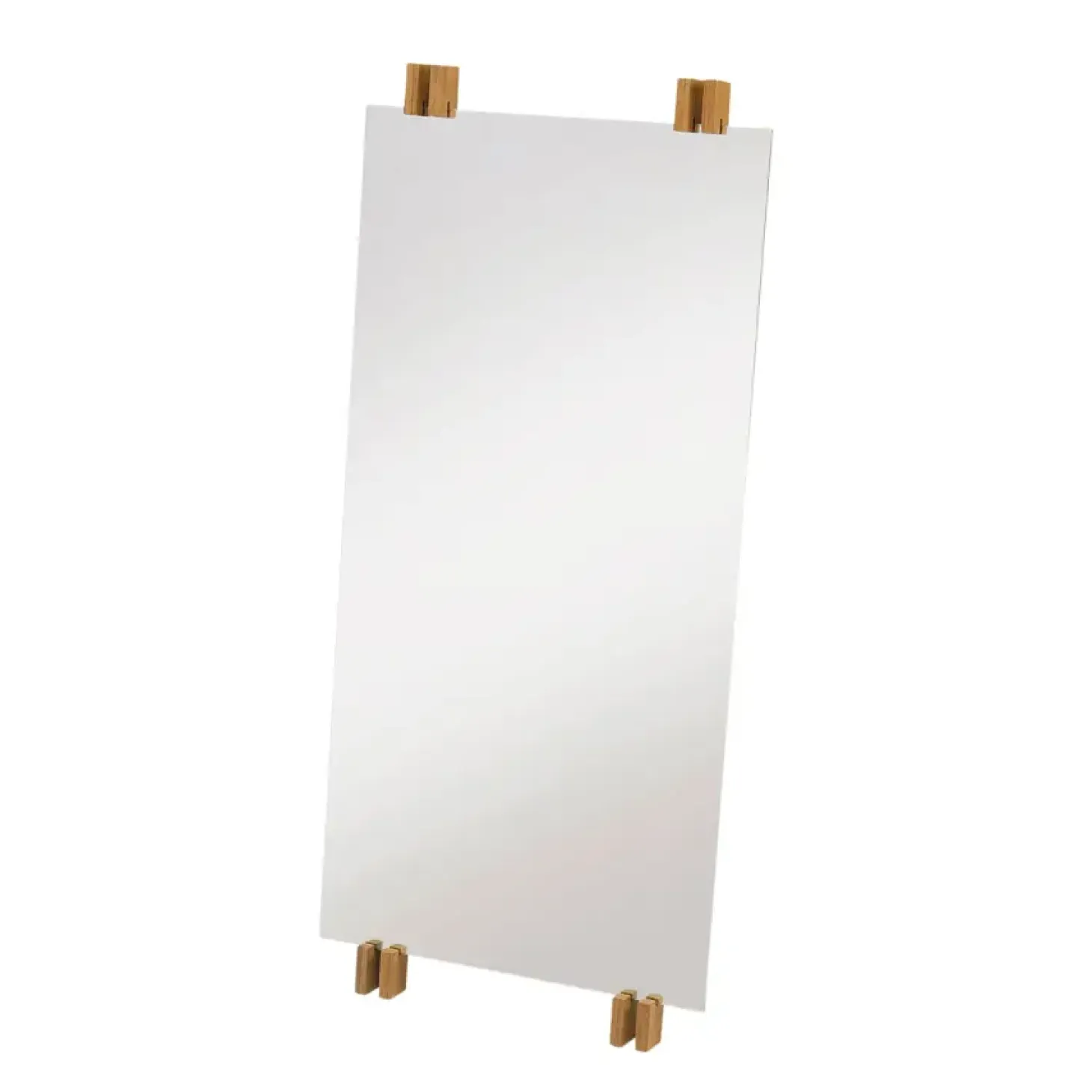 Det rektangulære format er en klassisk form, der fungerer i mange forskellige rum. Træbeslagene i teak giver spejlet et minimalistisk udtryk, der passer ind i moderne hjem, hvor man værdsætter funktionalitet kombineret med naturlige materialer. Fritz Hansen står bag designet med deres erfaring inden for skandinavisk håndværk.