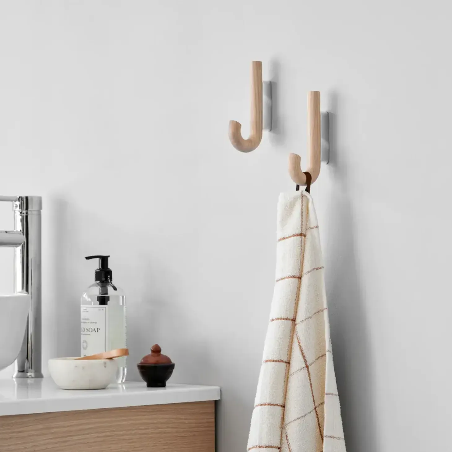 Super fin knage fra gejst, der er en diskret og smuk tilføjelse til hjemmet. Designet er meget umiddelbart og indbyder med det samme til at hænge sit overtøj, taske eller paraply på i gangen. Hook mini kan også placeres i køkkenet og bruges som knag til viskestykker og forklæder eller på badeværelset til håndklæder og badekåber.
