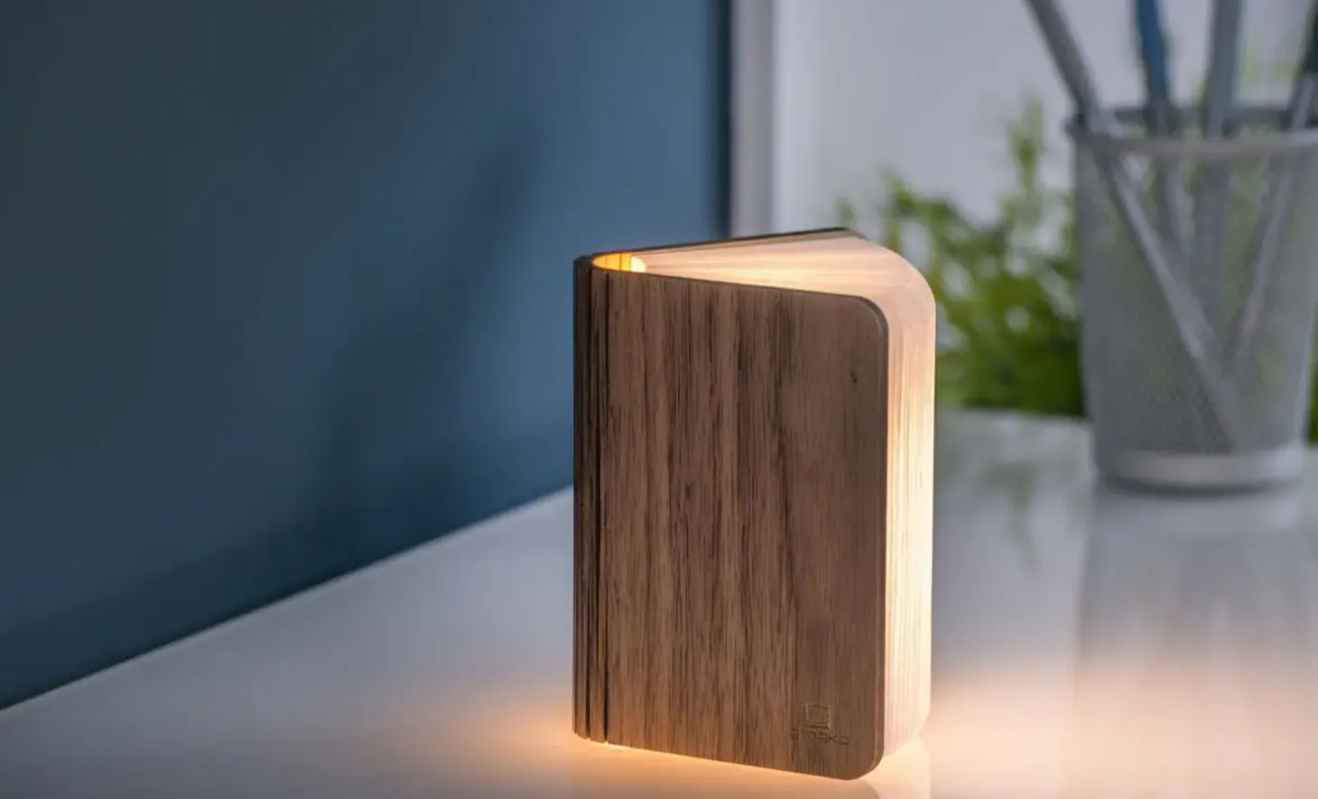 Hvis du foretrækker permanent strøm, kan lampen tilsluttes kontinuerligt. Batteriet holder i 10-12 timer på én opladning, så du kan bruge den gennem en hel aften uden afbrydelser. Det trælignende valnød-omslag tilføjer et naturligt element til dit hjem uden at dominere rummet.