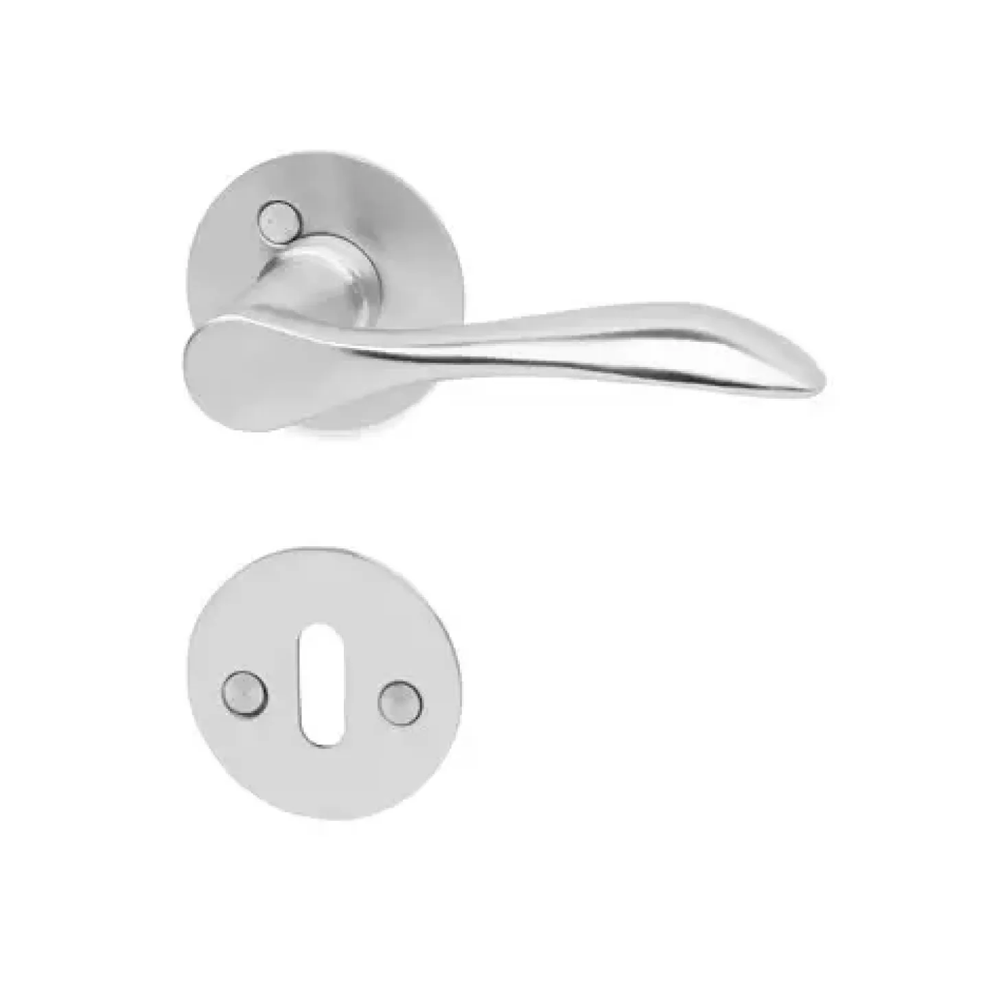 Leveres med 2 mm massiv roset og nøgleskilt. 4 stk. knækskruer M4×75 mm, 4 stk. Hylstermøtrikker M4, 2 stk. pinolskruer M5 med TX10-kærv samt dørgrebspind 105 mm.