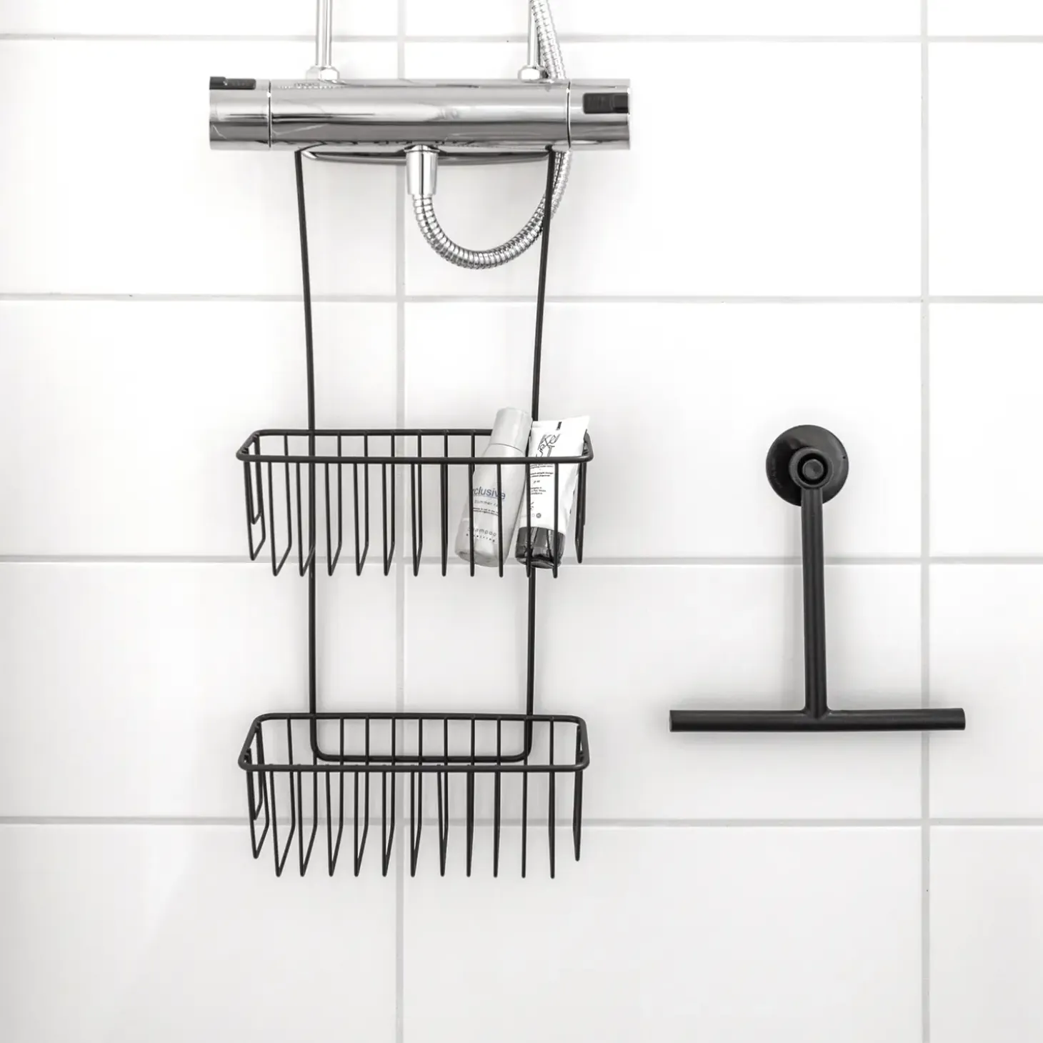 Smart gummiskraber med sugekop. Tryk den fast på flisen, brusekabinen eller anden glat overflade.