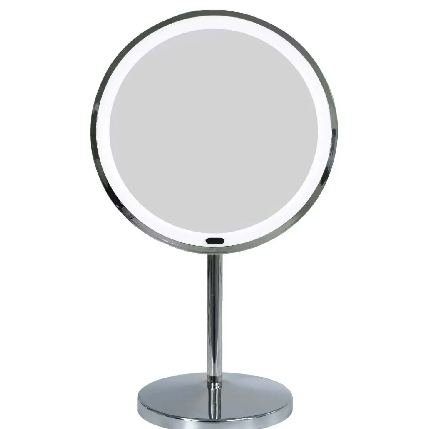 Make-up spejl med bordstativ. Spejlet har 5 gange forstørrelse. Spejldiameter 167 mm, med ramme 200 mm. Led-belysning i rammen, der oplyser detaljerne i spejlet. Belysningen drives af det medfølgende usb-kabel eller med batterier, medfølger ikke.