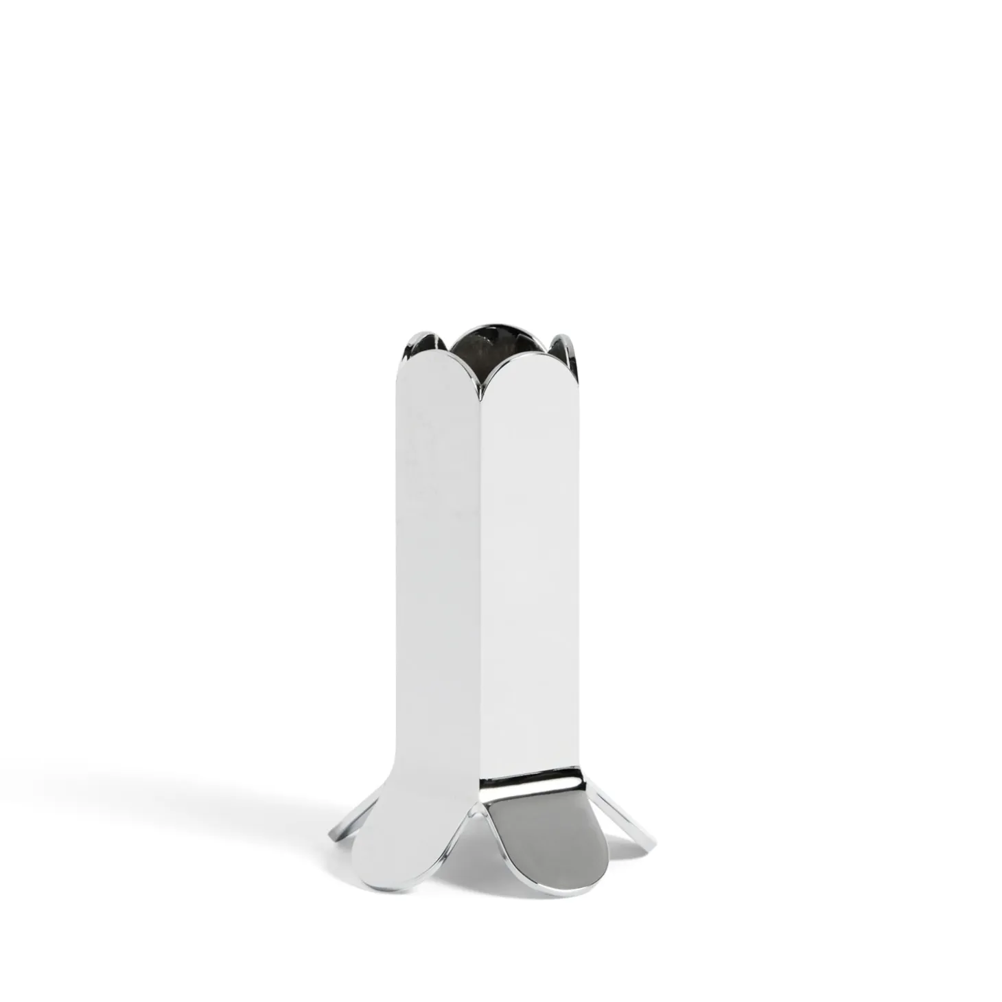 Denne lysestage fra HAY kombinerer skulpturel form med funktionel holdbarhed. Det bueformede design består af sammenhængende, afrundede buer, der skaber en kunstnerisk dimension i din indretning. Den reflekterende spejloverflade kaster interessante lysreflektioner og fungerer som et dekorativt element, selv når lyset ikke er tændt.