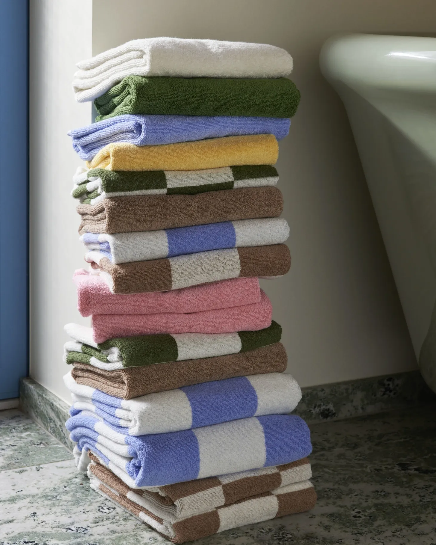 Hvis du leder efter et håndklæde, der forener sikkerhed og æstetik, er dette det rette valg. Den OEKO-TEX®-certificerede bomuld giver dig tryghed, mens det karakteristiske ternede design tilfører et stilrent udtryk til dit badeværelse.