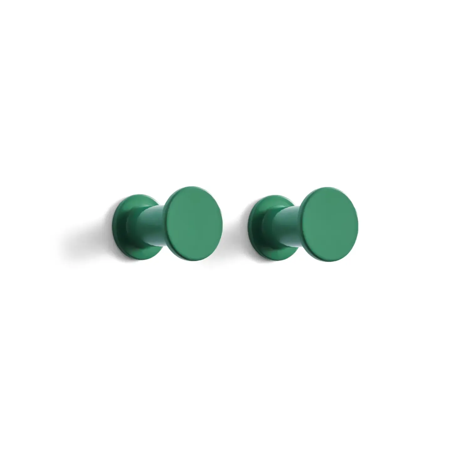 Med to ens knager får du mulighed for at skabe en symmetrisk ophængning på væggen. Den cylindriske form sikrer, at dine jakker og tasker hænger stabilt, mens den grønne farve tilfører et friskt touch til rummet.