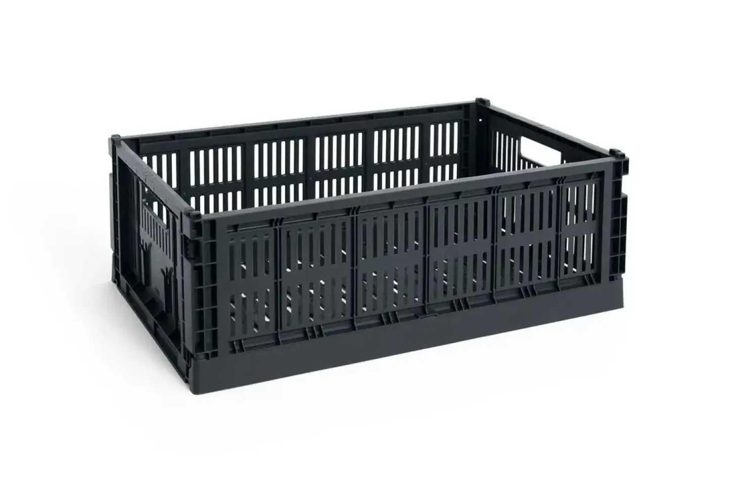 Det rektangulære design med perforerede sider gør det nemt at organisere og finde dine ting. Kassens størrelse er ideel til større genstande, mens den mørke kulfarve passer diskret ind i de fleste hjem og kontormiljøer.
