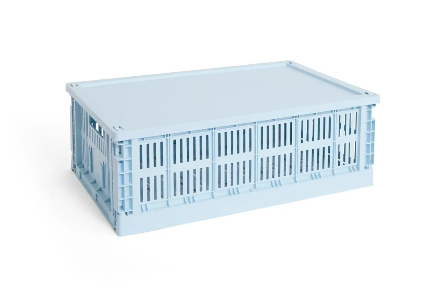 Denne rummelige opbevaringskasse i blød blå nuance kombinerer praktisk design med god funktionalitet. Den er fremstillet af 100 % genanvendt PP-materiale, der sikrer både holdbarhed og stabilitet i hverdagen.